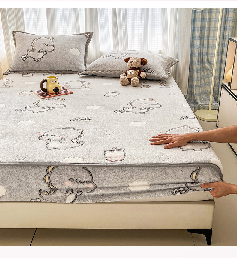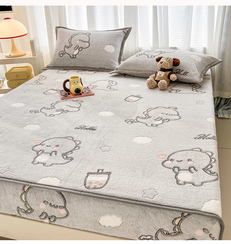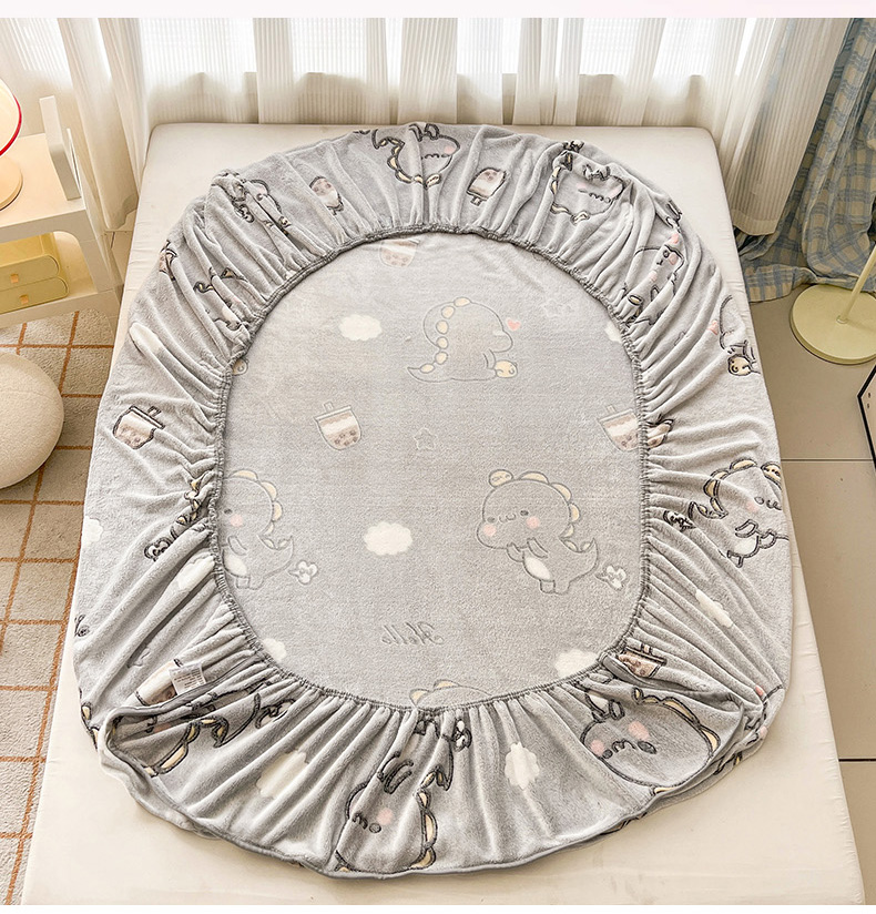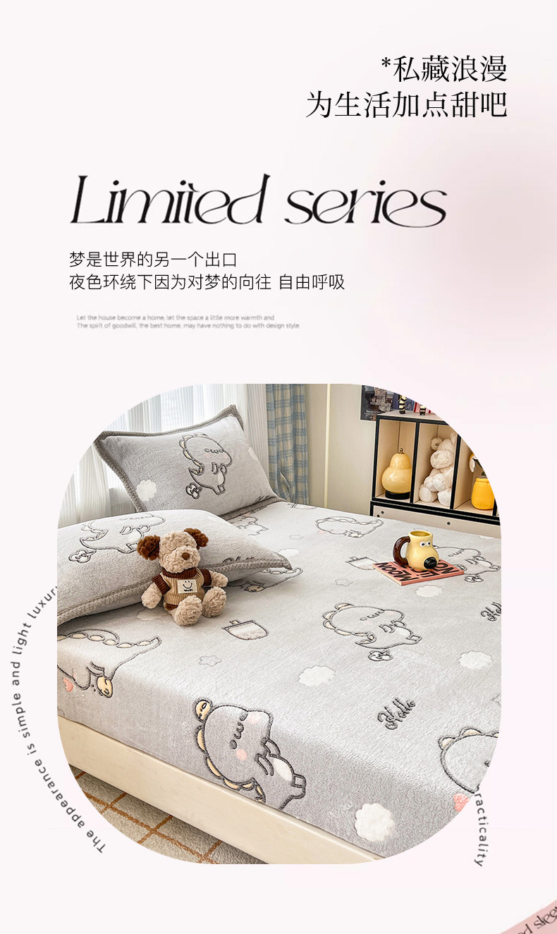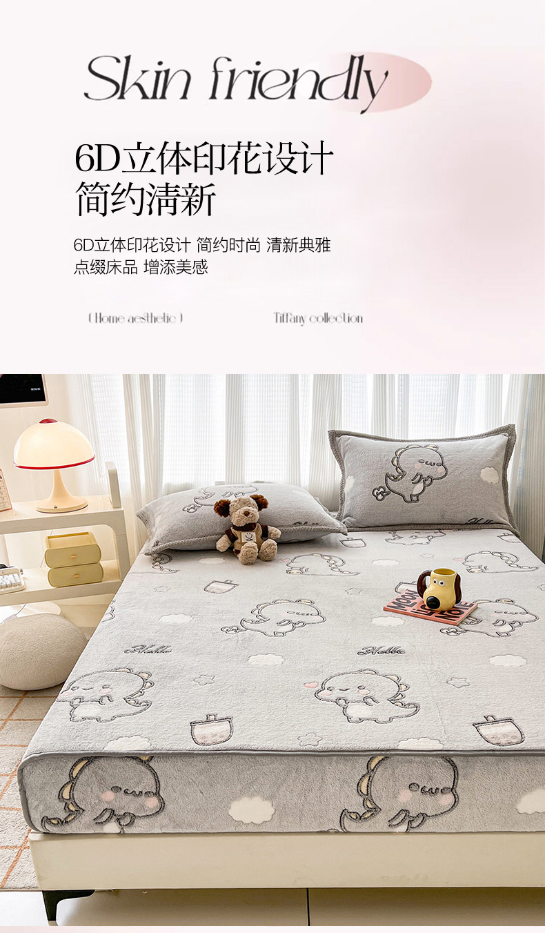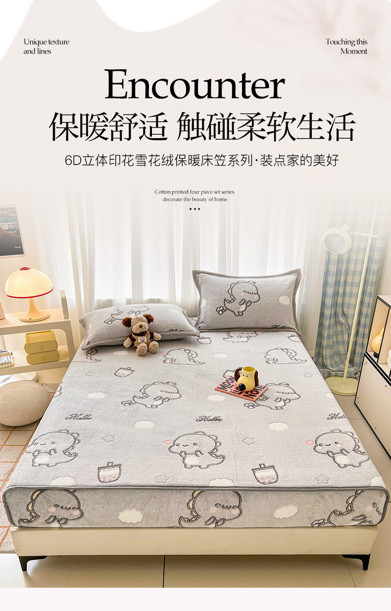 倾慕家纺 2024新款加厚保暖6D立体雪花绒系列-单床笠 奶茶小龙灰