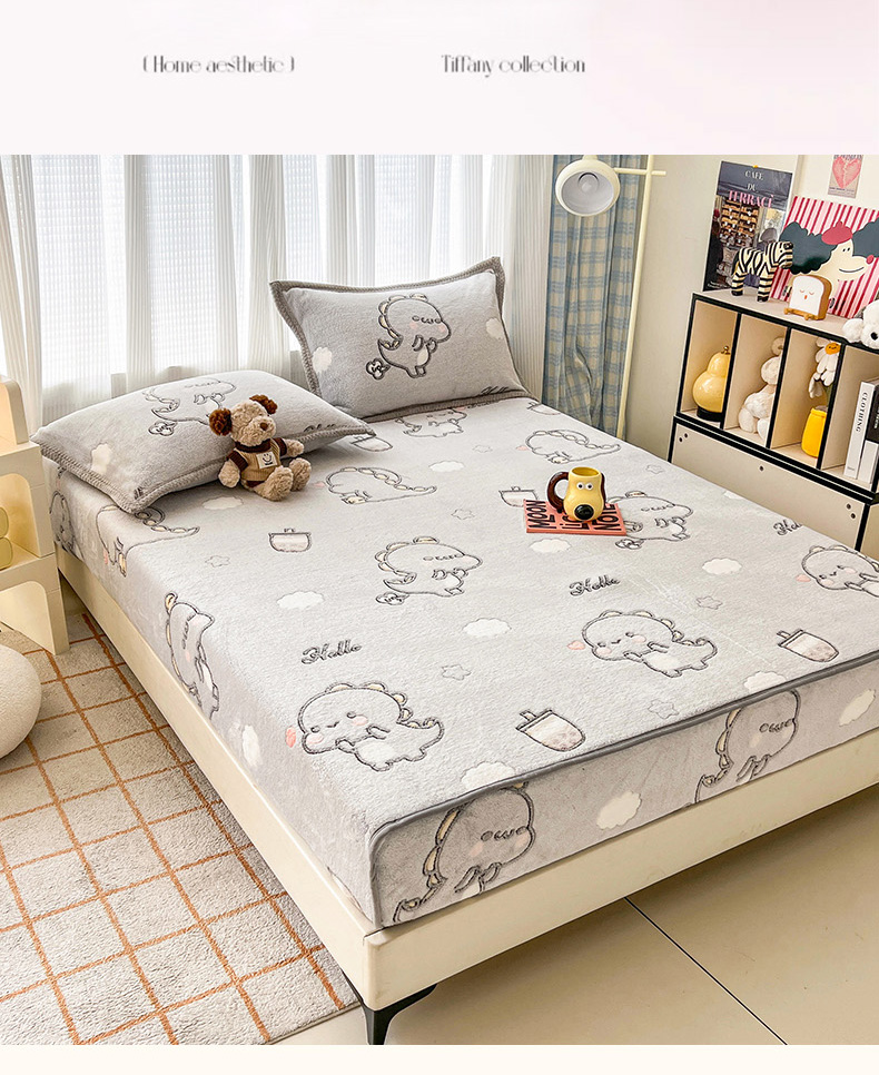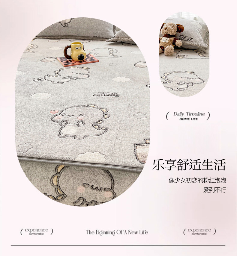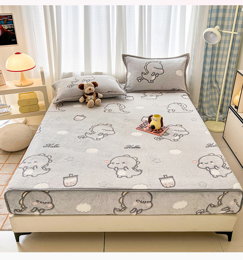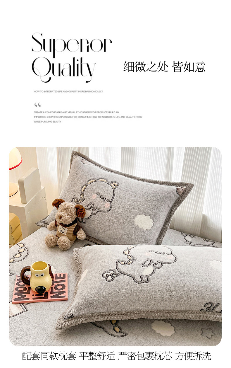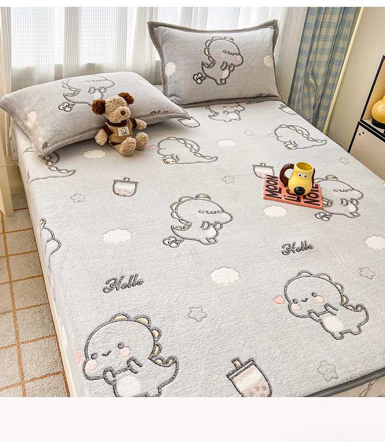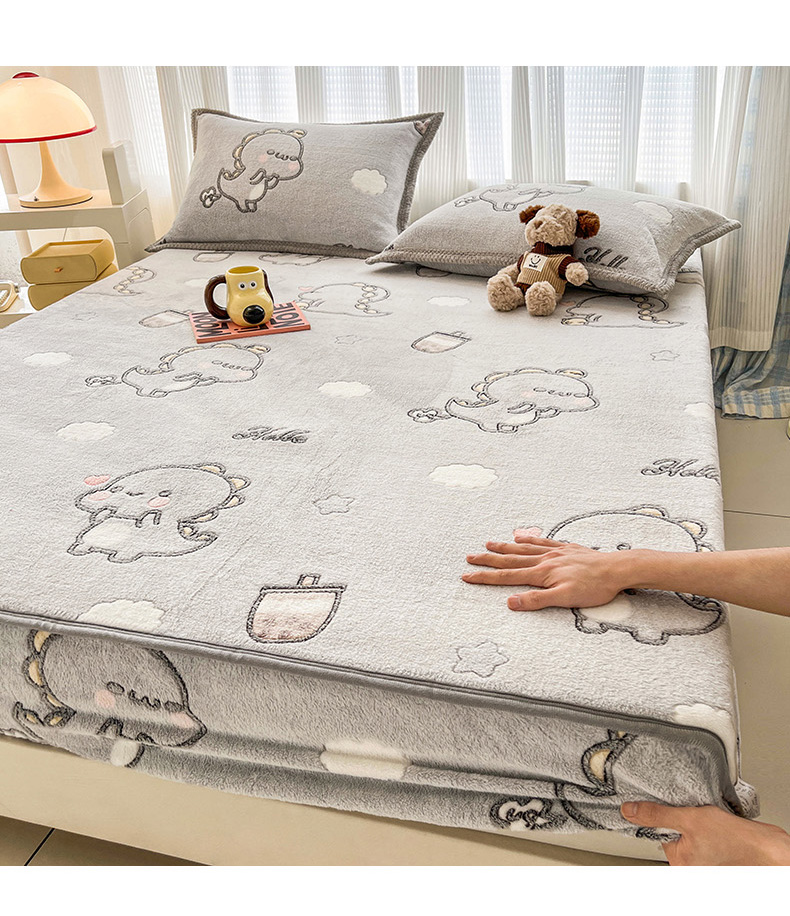 倾慕家纺 2024新款加厚保暖6D立体雪花绒系列-单床笠 奶茶小龙灰