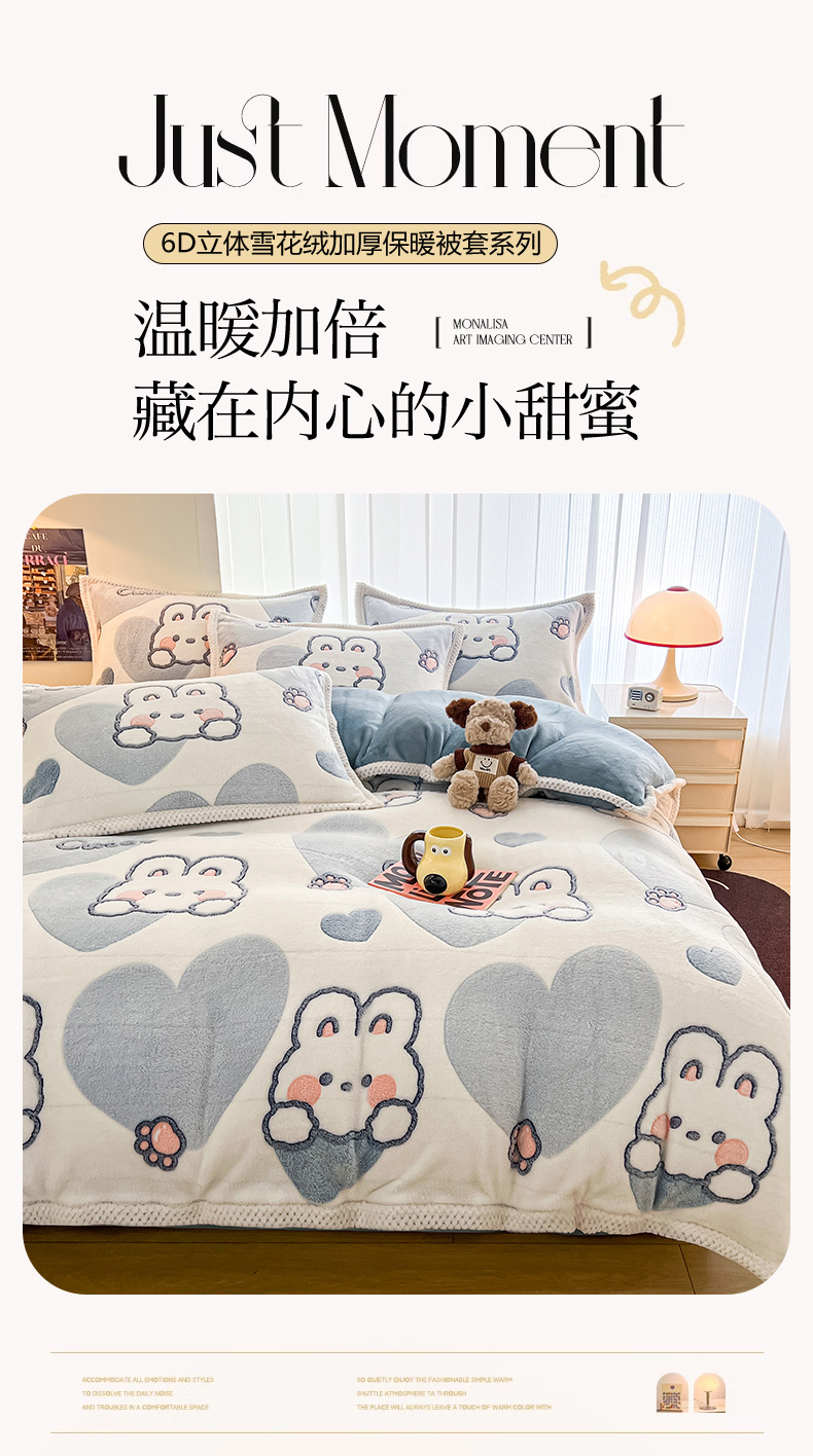 商品名称:倾慕家纺 2024新款加厚保暖6D立体雪花绒系列-单被套 波波兔