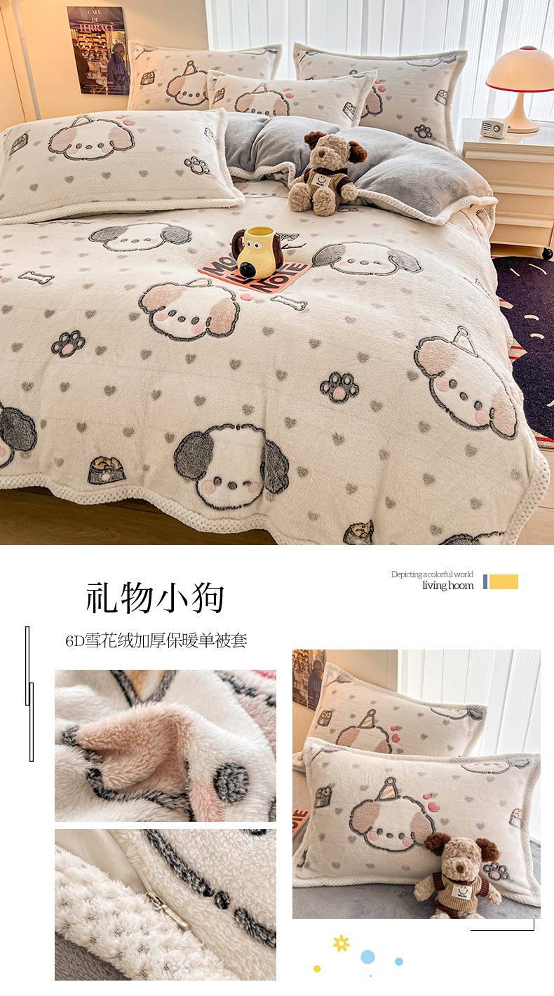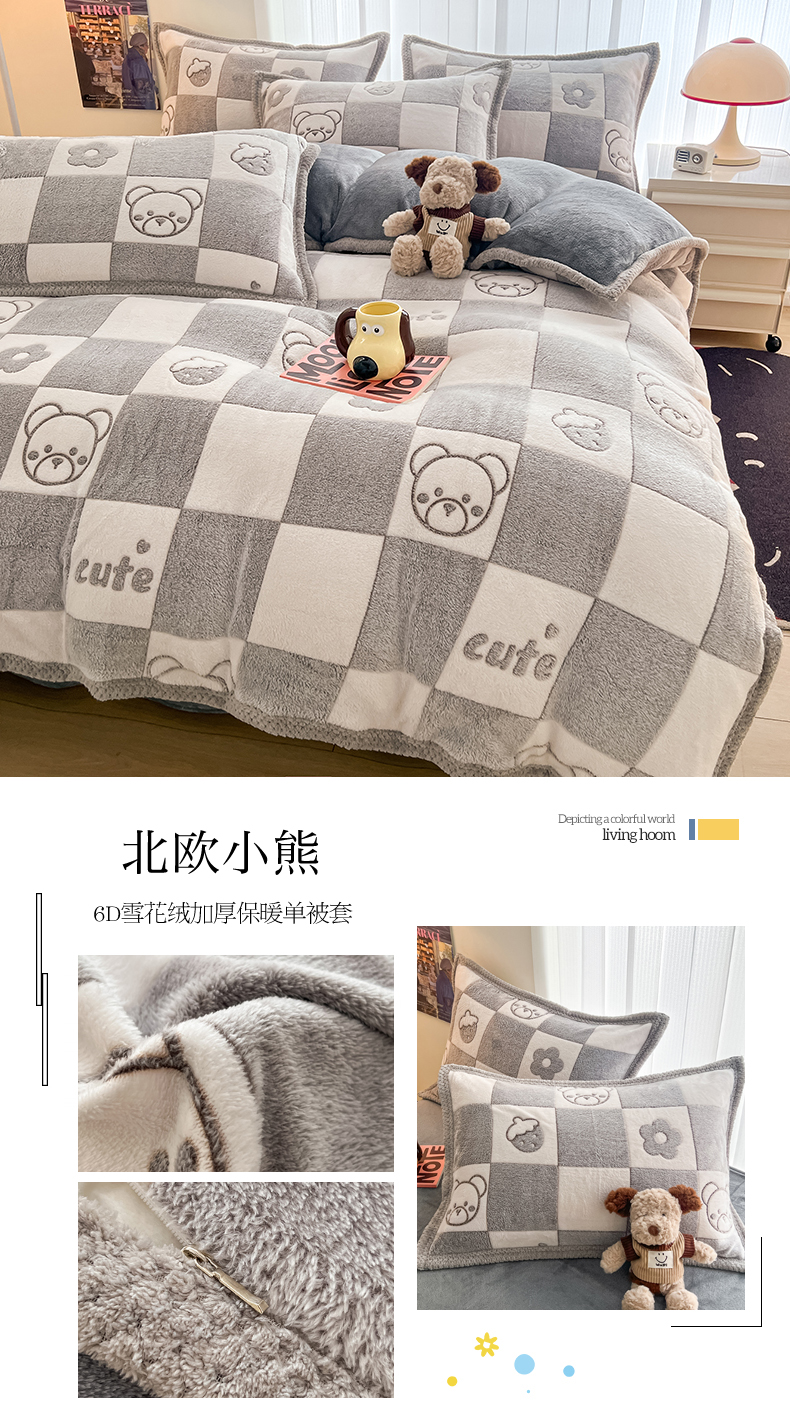 (总)倾慕 2025新款6D立体雪花绒系列四件套,北欧小熊,波波兔,波点头像,格格狗,欢乐小虎,活泼小兔,咖啡熊兔,礼物小狗,萌宠小兔,奶茶小龙灰,奶茶小龙蓝,奶茶小熊,汽车小熊,森林公园,时光小狗,时尚猫咪,小皮皮