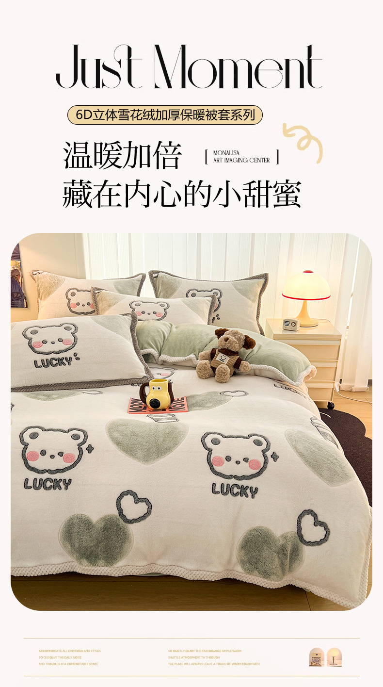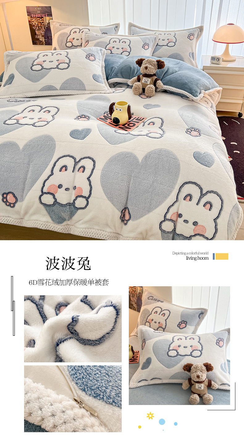 (总)倾慕 2025新款6D立体雪花绒系列四件套,北欧小熊,波波兔,波点头像,格格狗,欢乐小虎,活泼小兔,咖啡熊兔,礼物小狗,萌宠小兔,奶茶小龙灰,奶茶小龙蓝,奶茶小熊,汽车小熊,森林公园,时光小狗,时尚猫咪,小皮皮