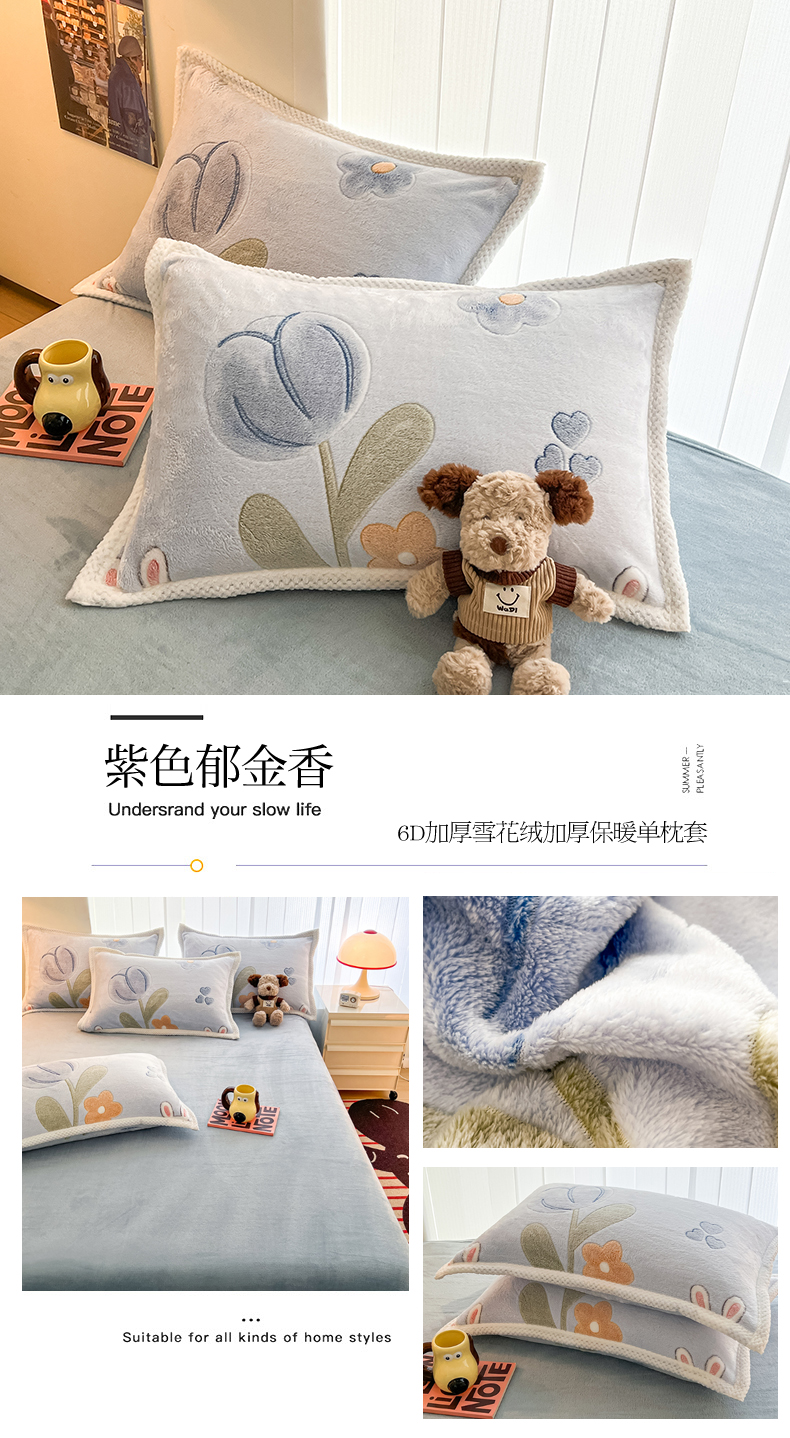 倾慕家纺 2024新款加厚保暖6D立体雪花绒系列-单枕套 萌萌兔