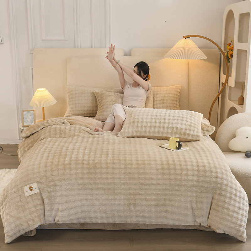 商品名称:卡迪亚家纺 2024新款亲肤舒适泡泡绒四件套 驼色