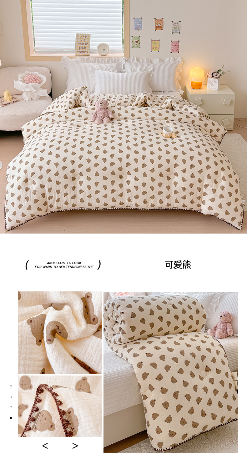 • 91家纺网 家纺一手货源 找家纺 芯恋家居 2025新款秋冬款母婴级全棉皱皱双层纱大豆被春秋被加厚大豆被 可爱熊
