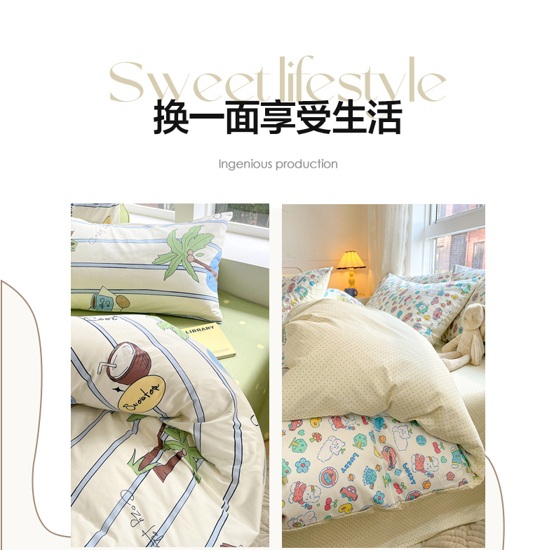 当前位置: 91家纺网 > 商品网购 > 床品套件 > 四件套 > 全棉普通四件套 > 麦伦家居 2024全棉斜纹13372小清新碎花卡通系列四件套 度假时光