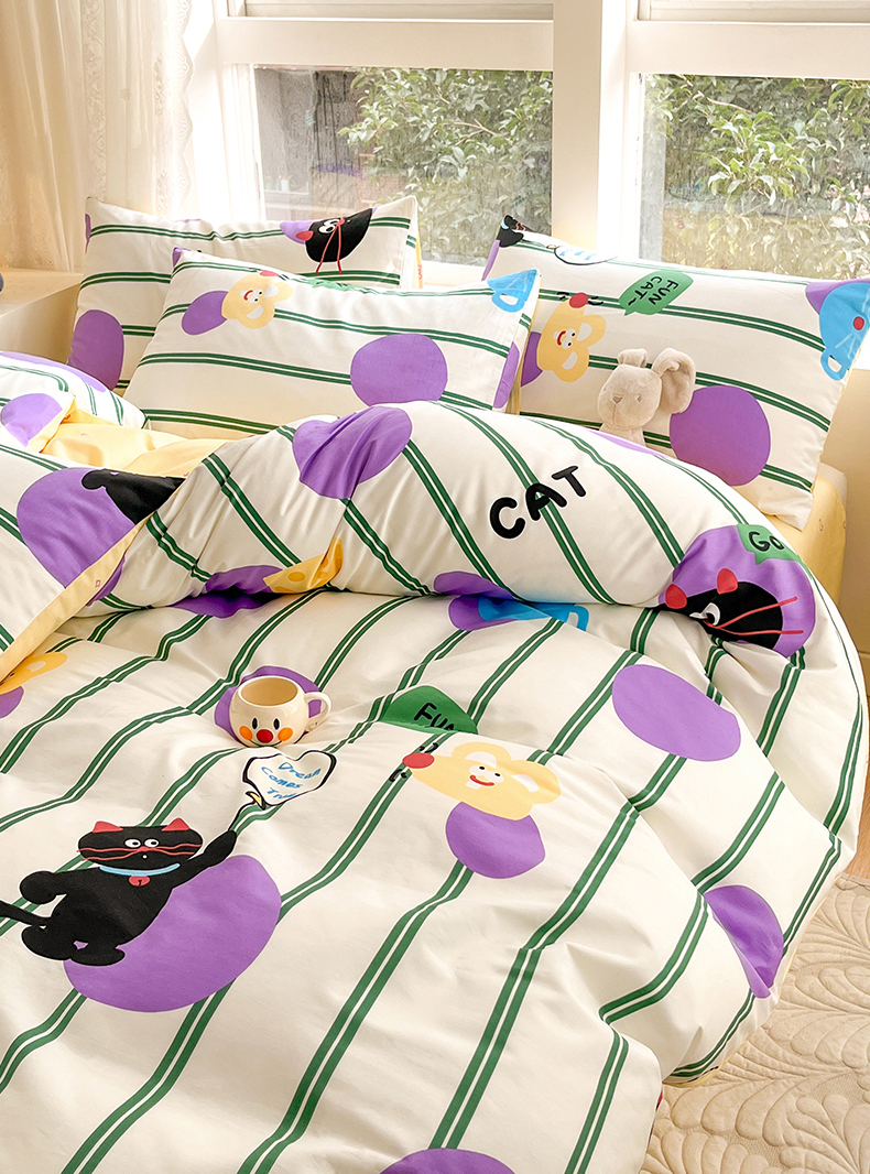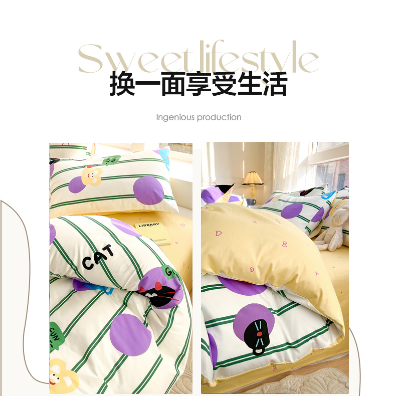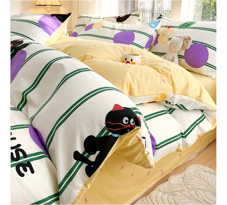 当前位置: 91家纺网 > 商品网购 > 床品套件 > 四件套 > 全棉普通四件套 > 麦伦家居 2024全棉斜纹13372小清新碎花卡通系列四件套 猫咪精灵