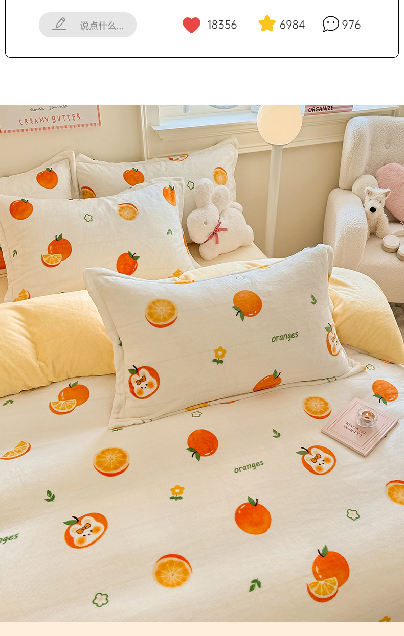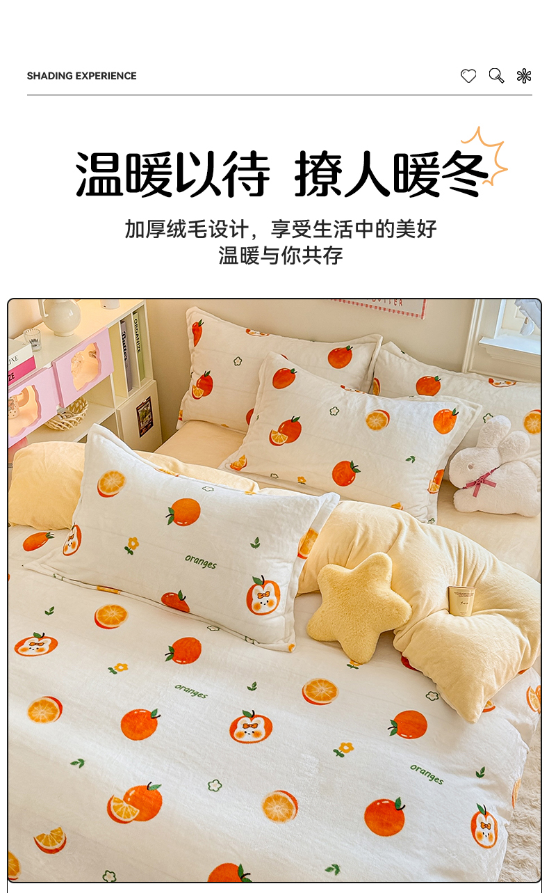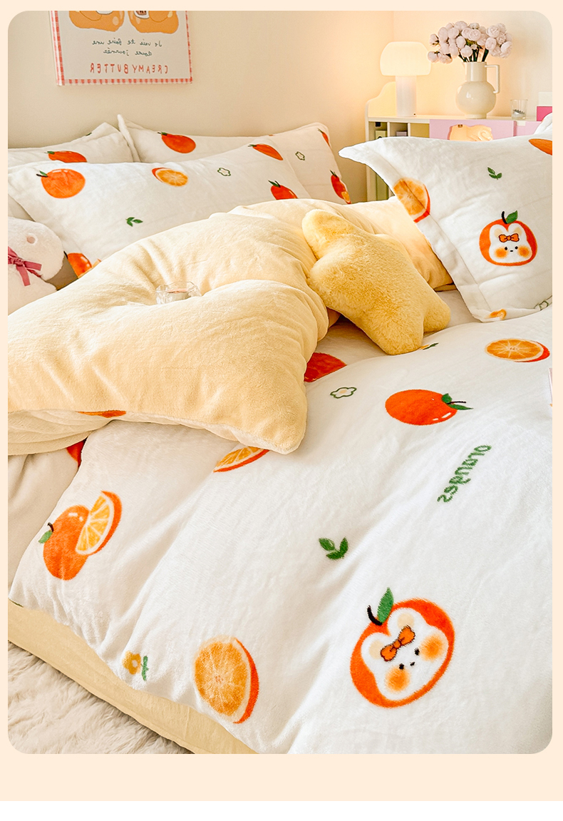当前位置: 91家纺网 > 商品网购 > 床品套件 > 四件套 > 牛奶绒四件套 > 名兮 2024新款卡通时尚风高克重牛奶绒四件套 小橘子