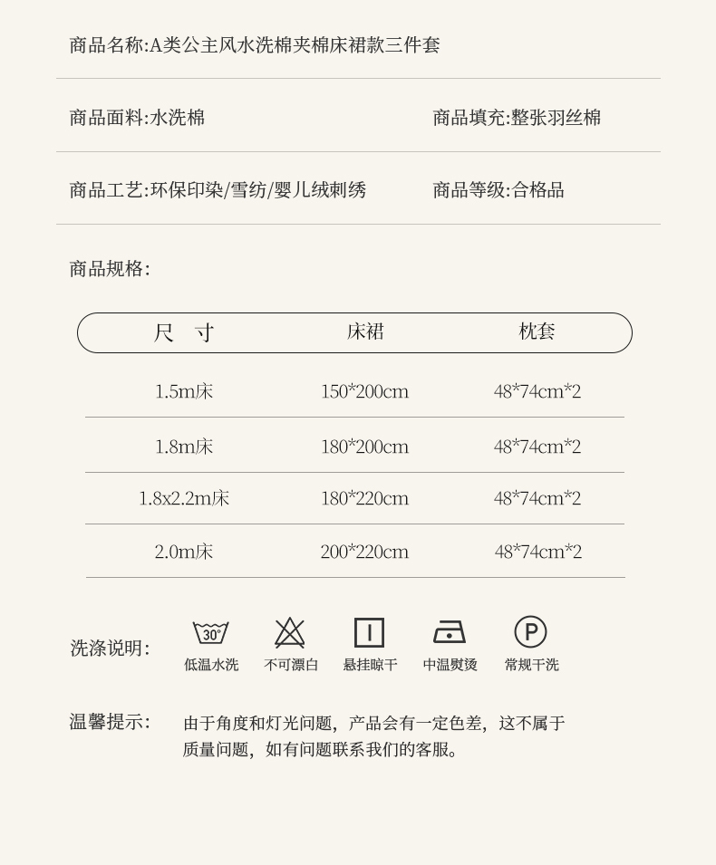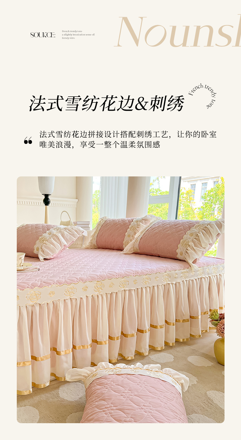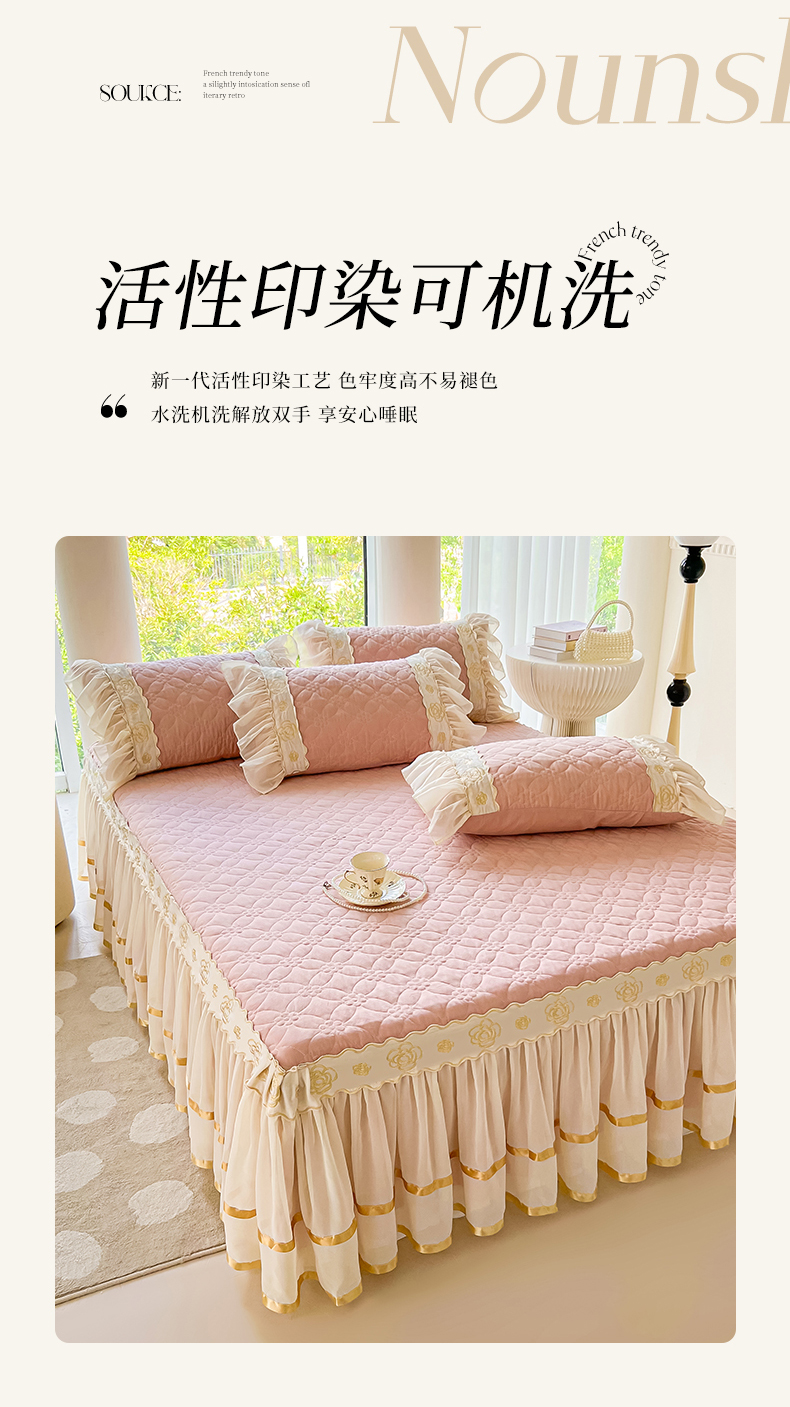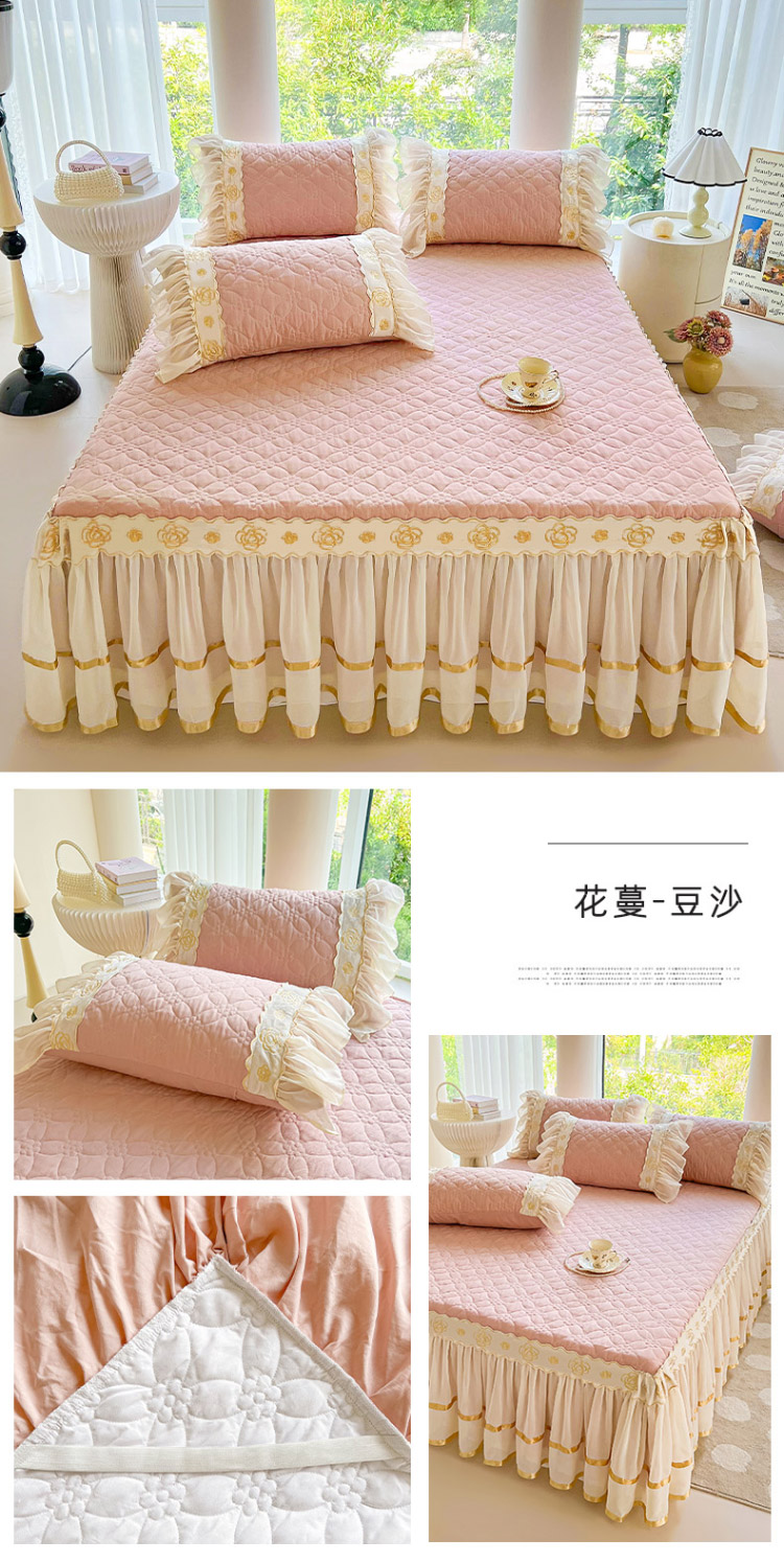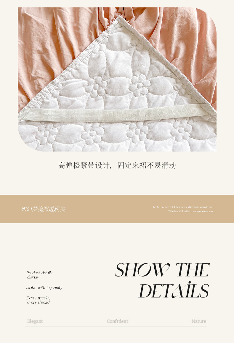商品名称:罗艺轩 2024新款公主风水洗棉夹棉床裙-花蔓花蔓-豆沙