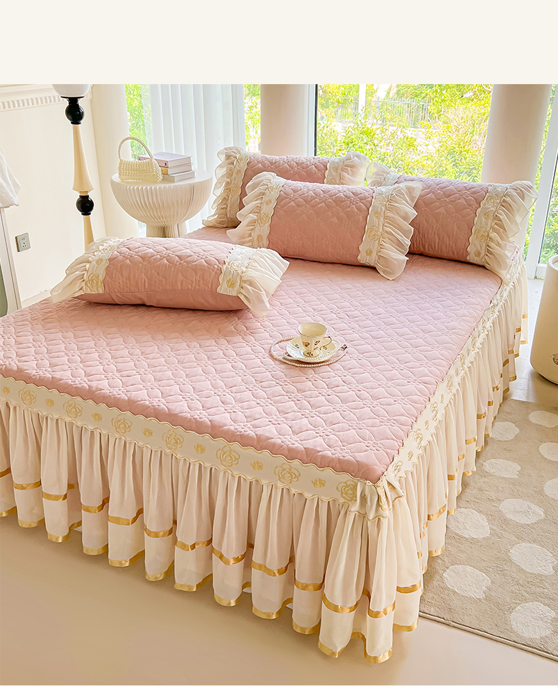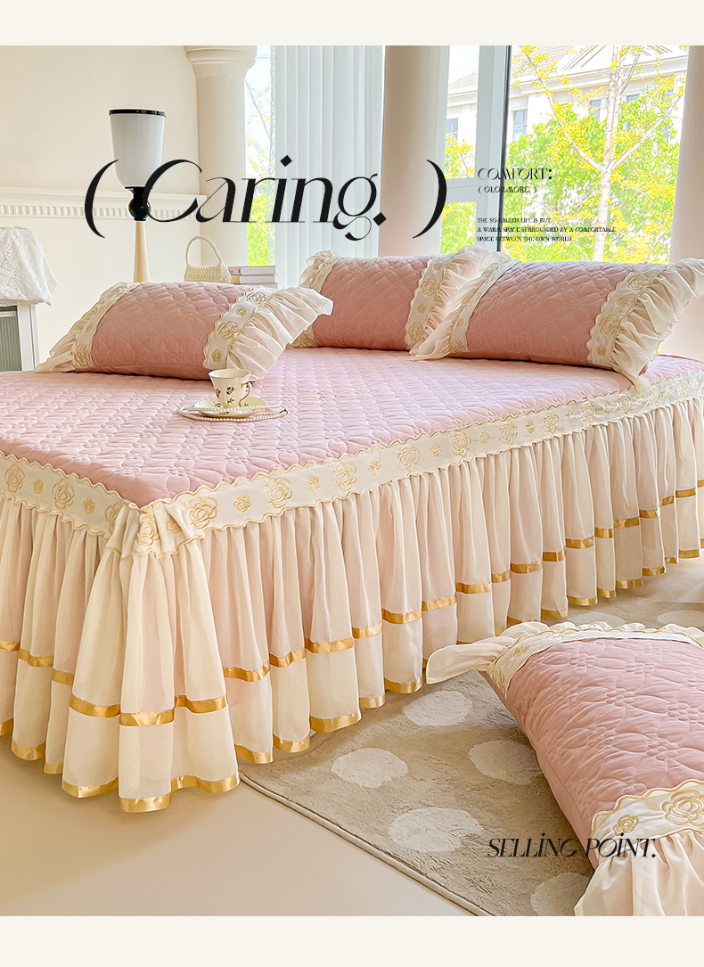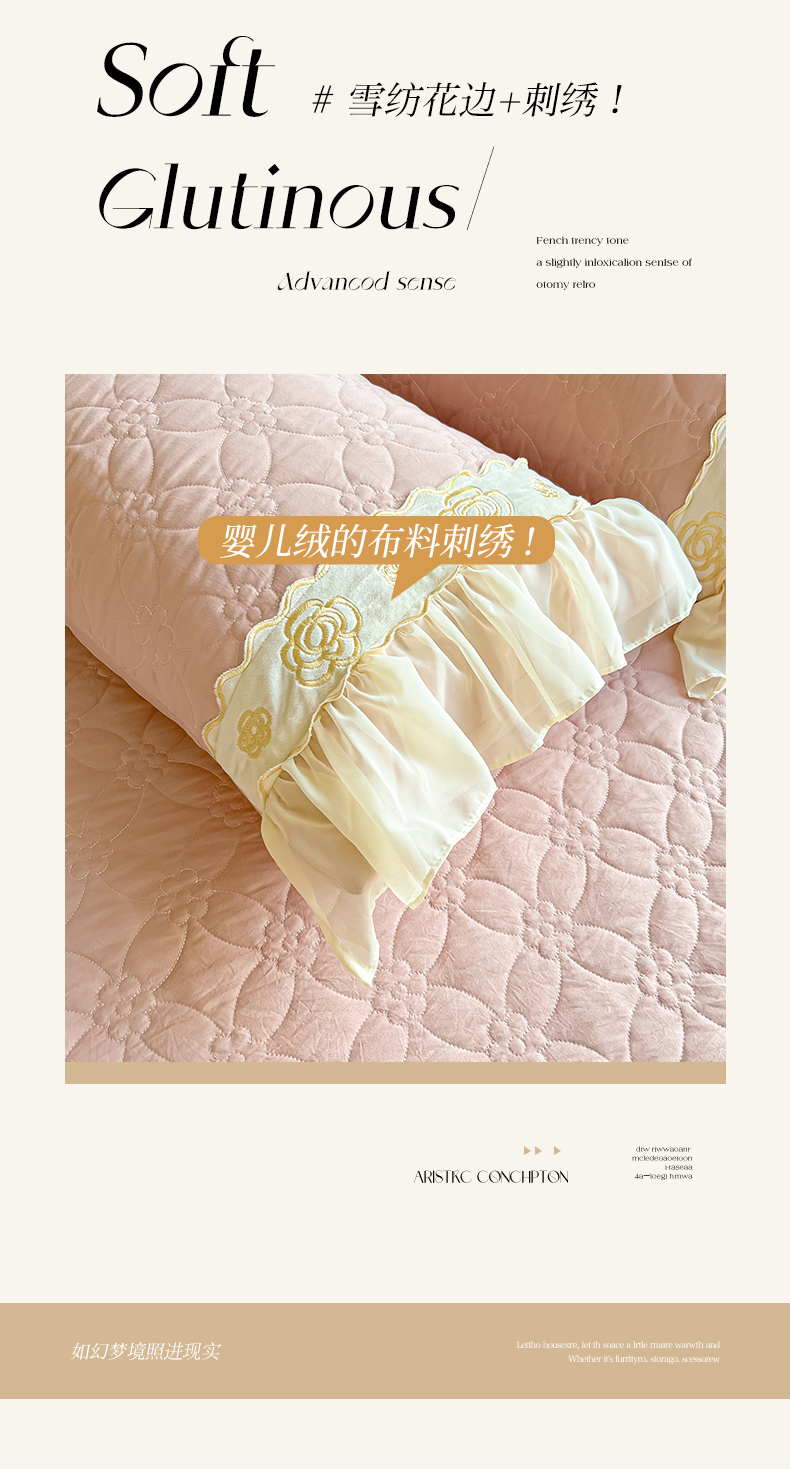 罗艺轩 2024新款公主风水洗棉夹棉床裙-花蔓花蔓-豆沙