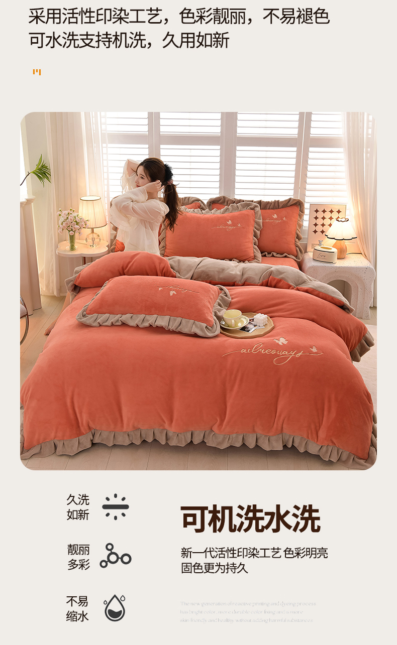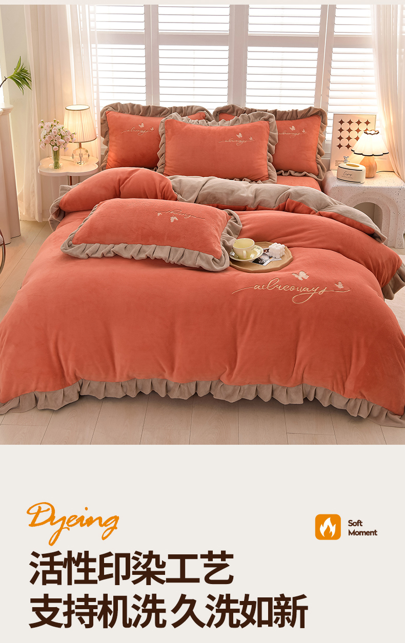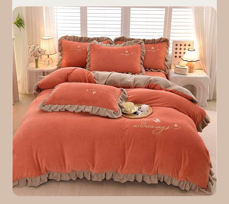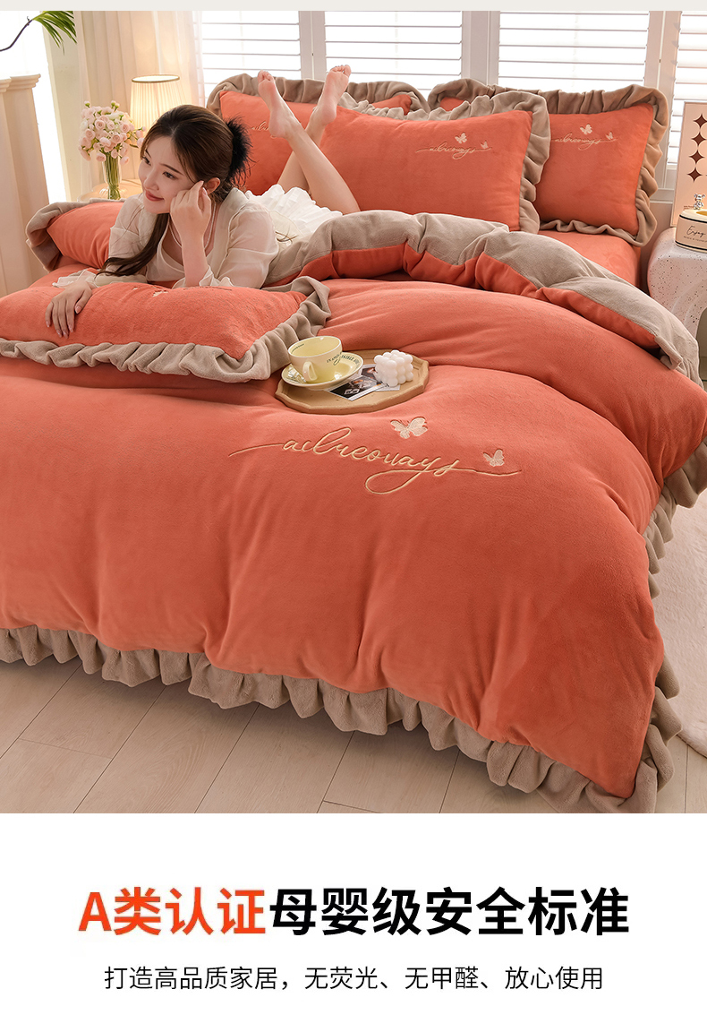 (总)氧家 2025款韩版纯色双层花边加厚牛奶绒四件套 ,素颜-宾利蓝(浅),素颜-橙橘色,素颜-高雅白,素颜-卡琪,素颜-浅豆沙,素颜-时尚灰,素颜-熏韵紫