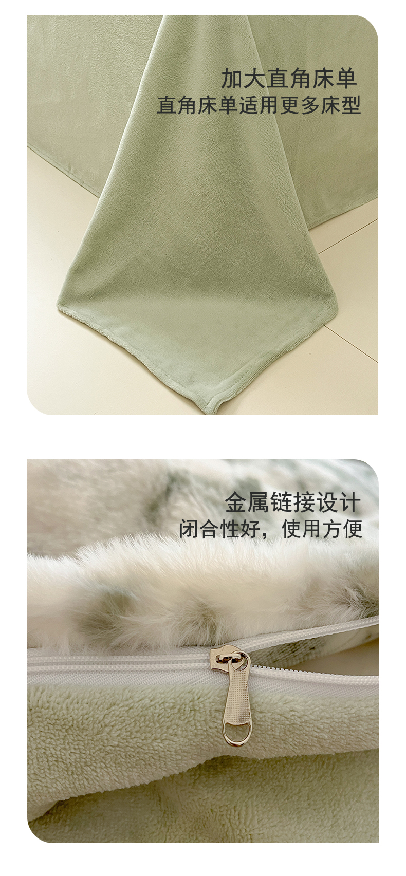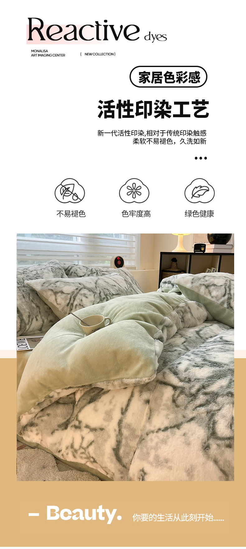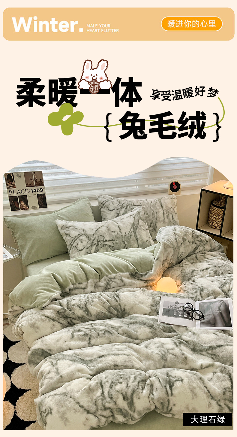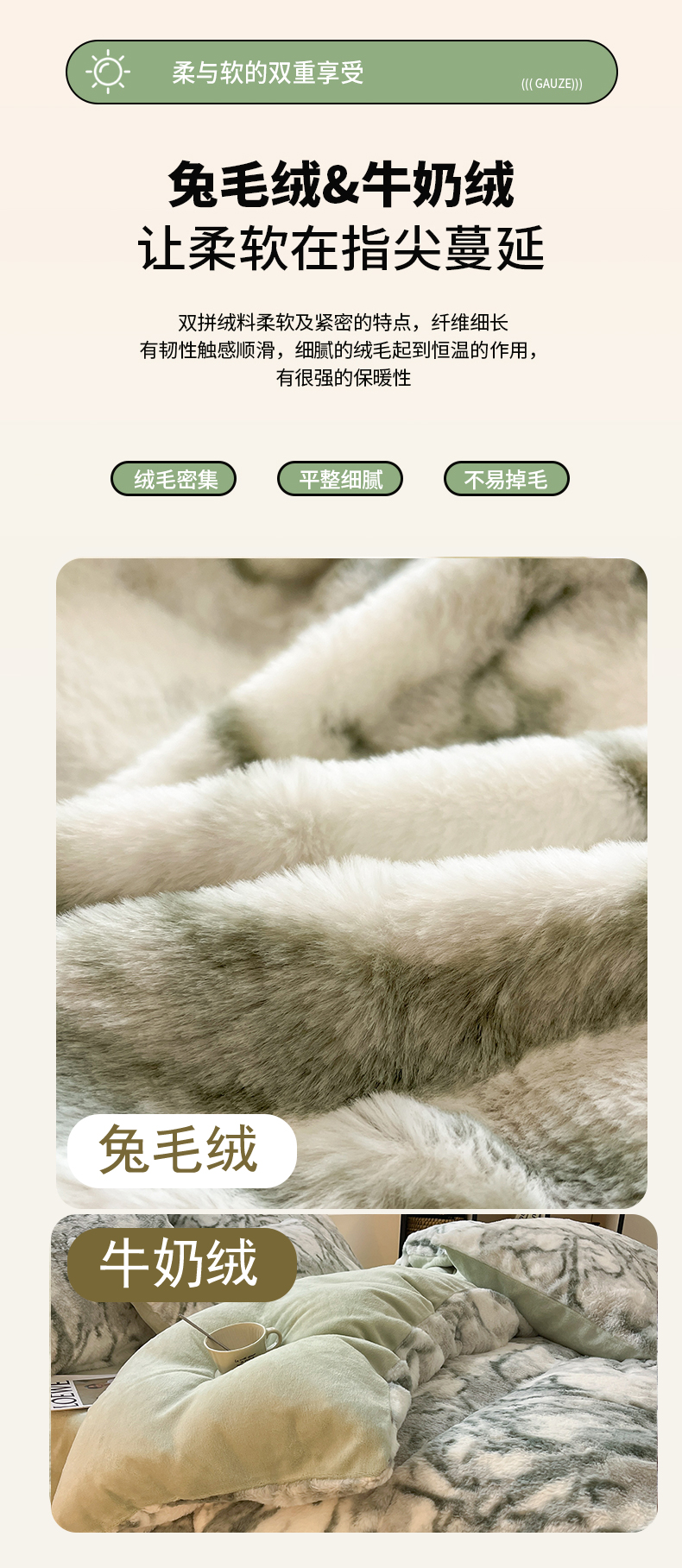 金爱家 2024新款立体牛奶绒兔毛绒印花四件套 兔毛印花-大理石绿