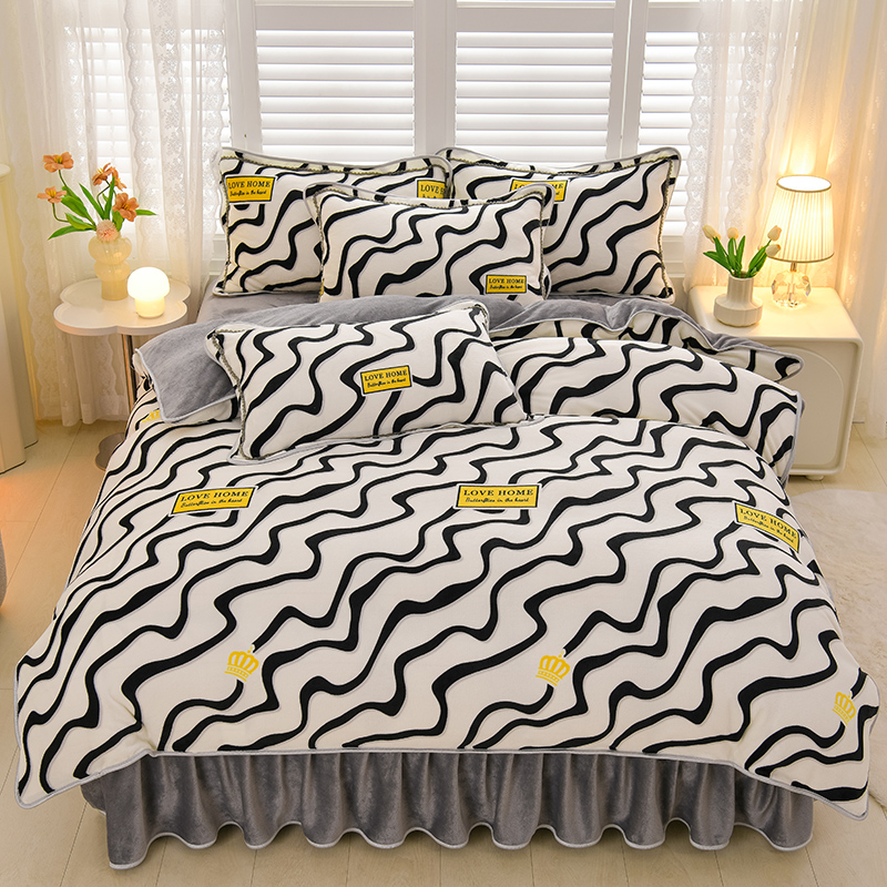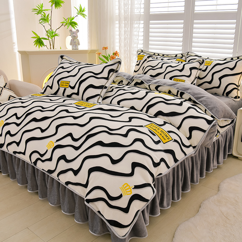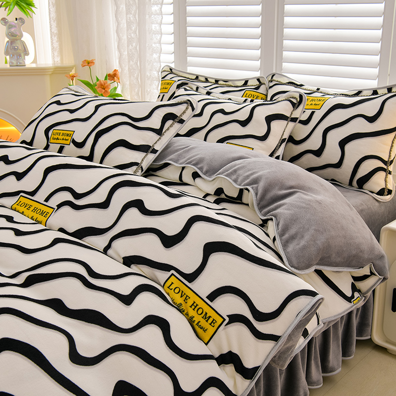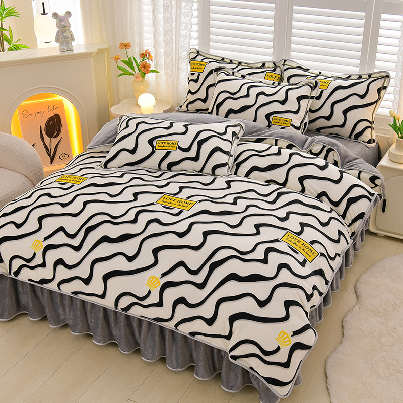 红宝利 2024新款亲肤牛奶绒印花四件套 简约生活