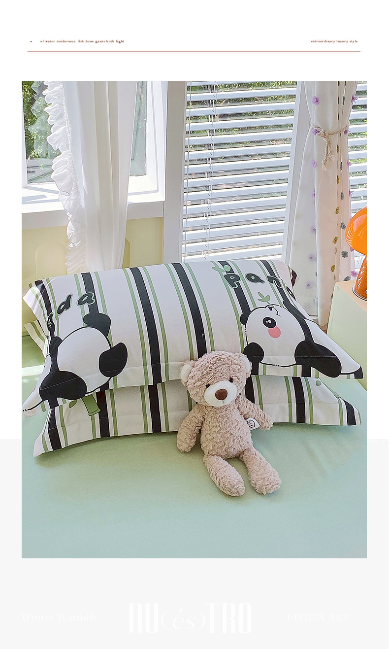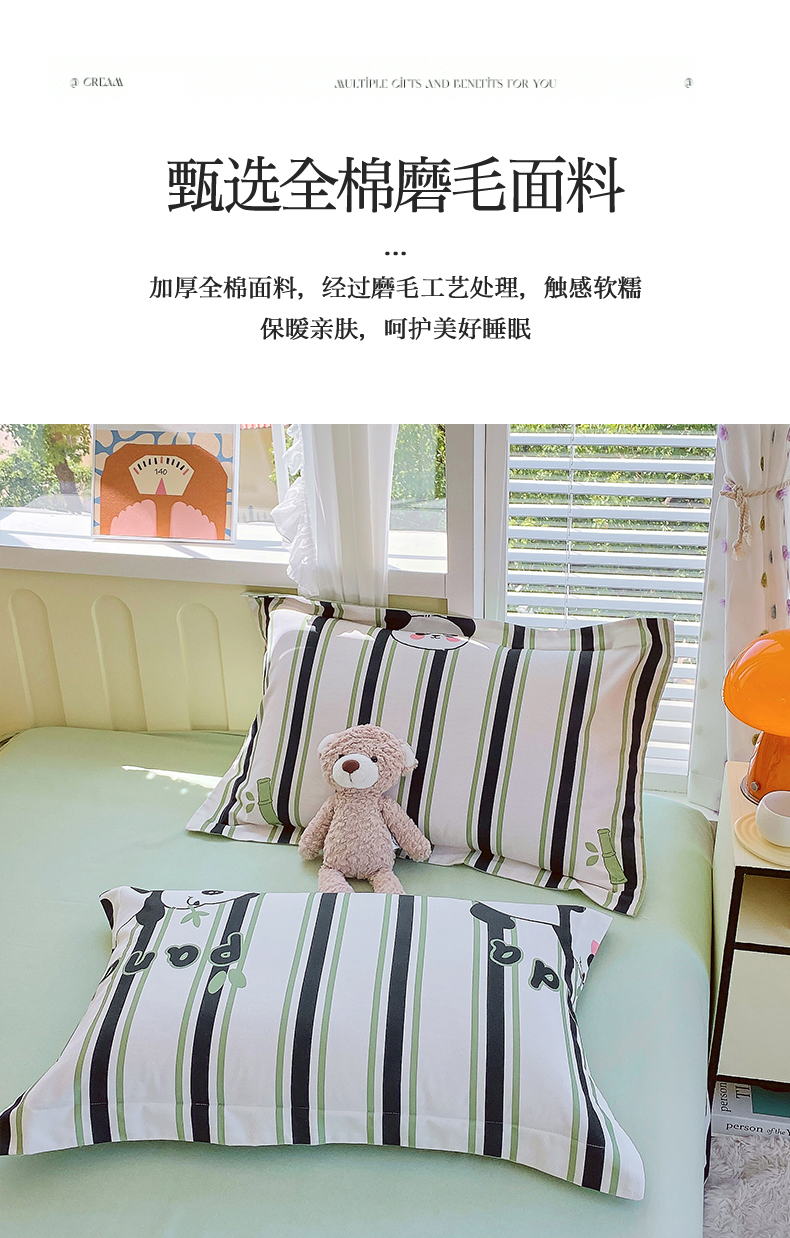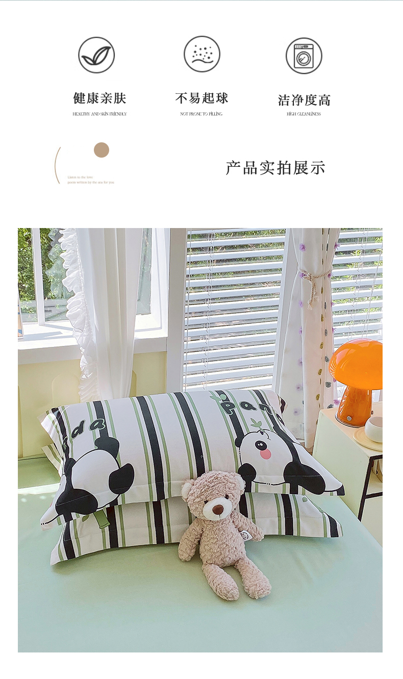 商品名称:2024新款AB版.生态磨毛印花单枕套 快乐熊猫