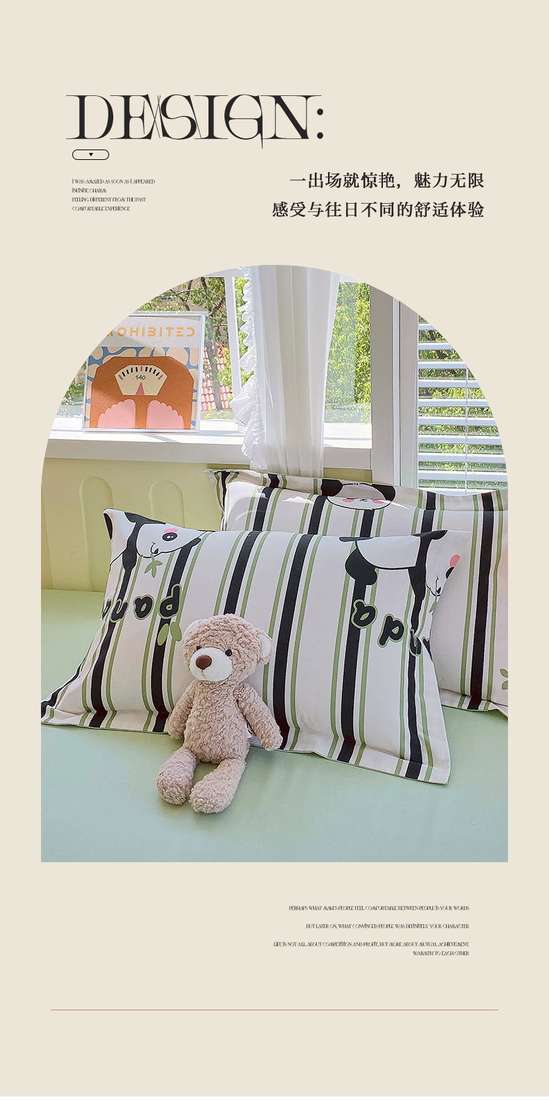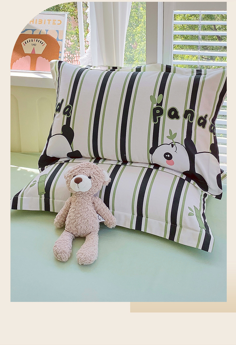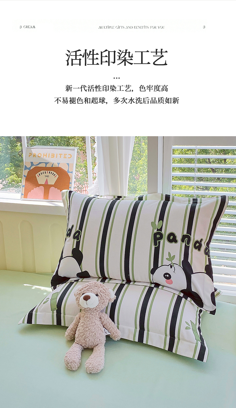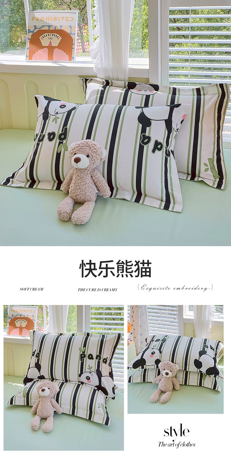 2024新款AB版.生态磨毛印花单枕套 快乐熊猫