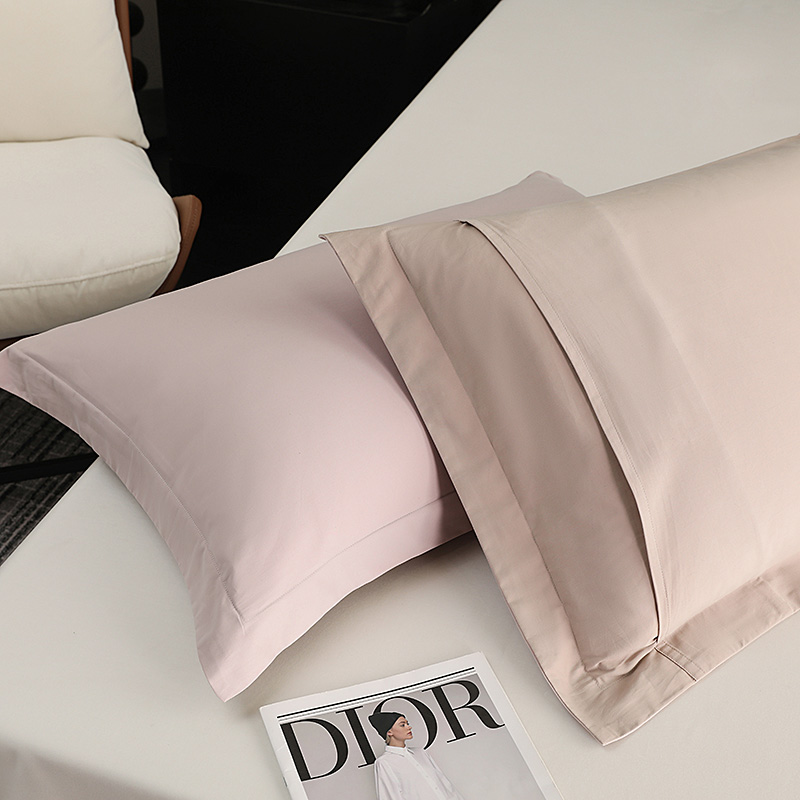 商品名称:莱阁亿 2025秋冬新款高支高密全棉纯棉磨毛双拼纯色单枕套 枕套单件 浅玉粉&粉糖