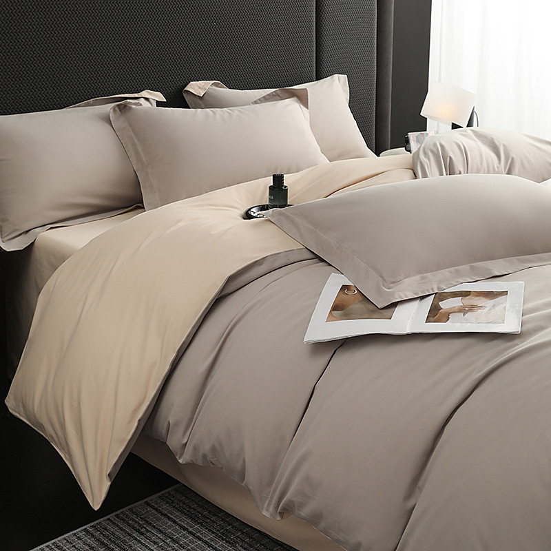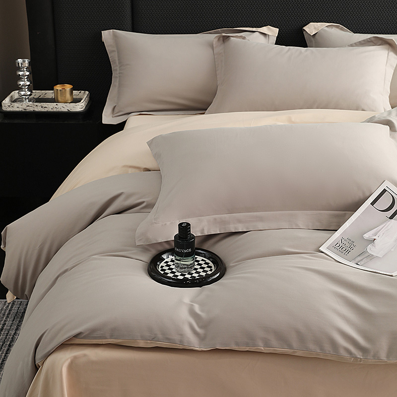 (总)莱阁亿 2025新款全棉60S素色双拼四件套,槐暖鹅黄,焦糖+栗色,玫瑰红茶,暮色烟雨,雅士灰+天空蓝,烟灰紫+香槟金,莺茶绿+香槟金,樱花白桃,陨石灰+拿铁