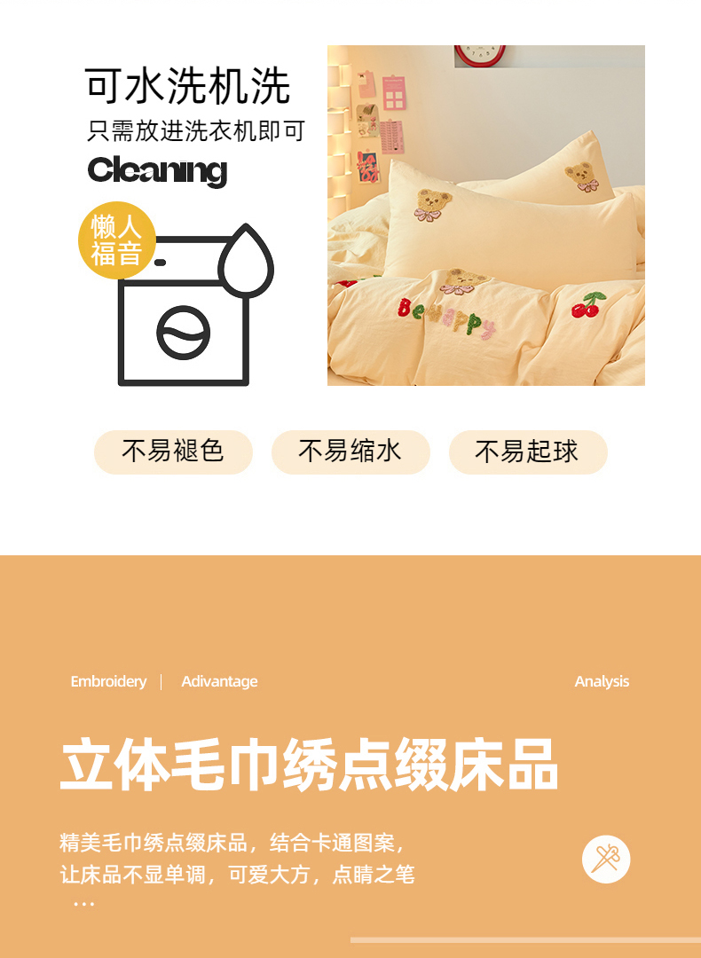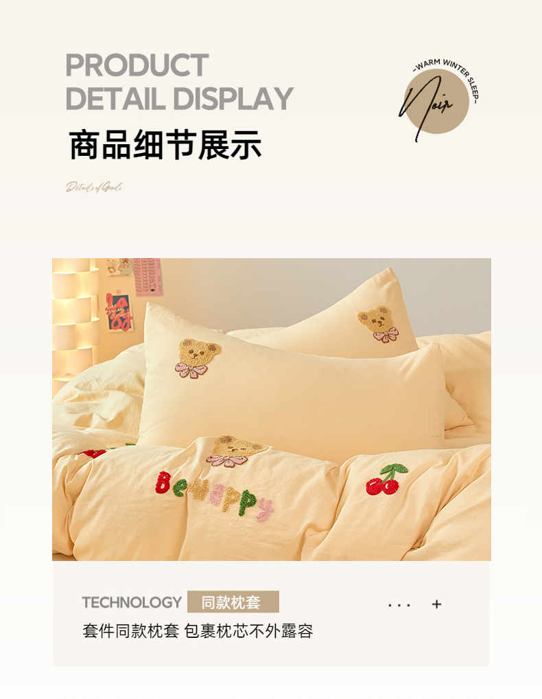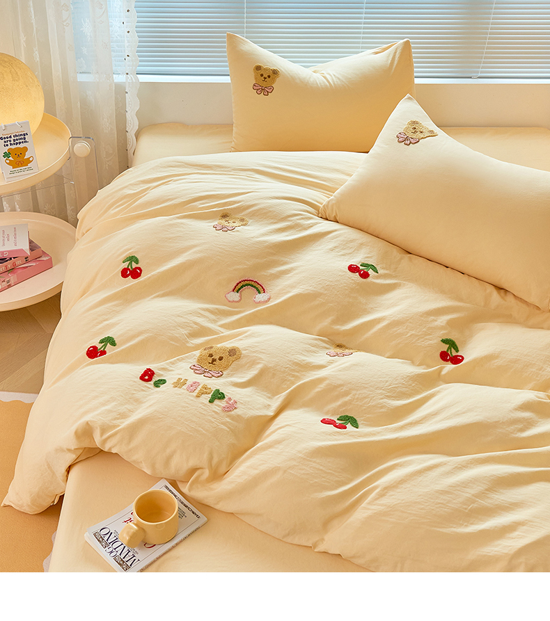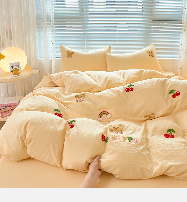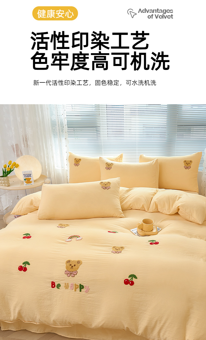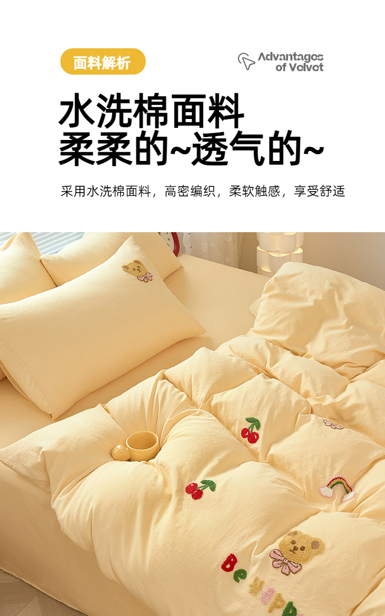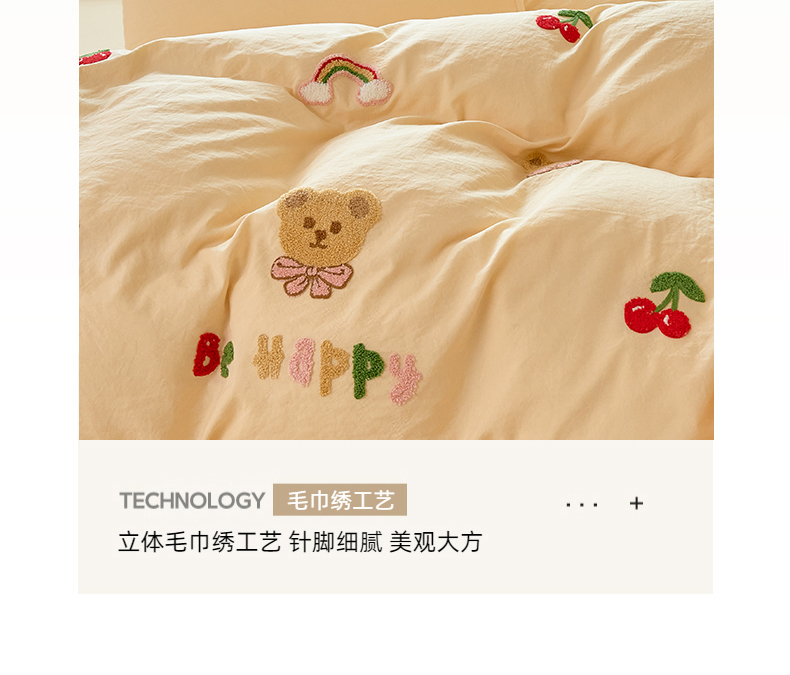 商品名称:云锦家居 2024新款水洗云朵棉立体毛巾绣四件套 樱桃啵仔