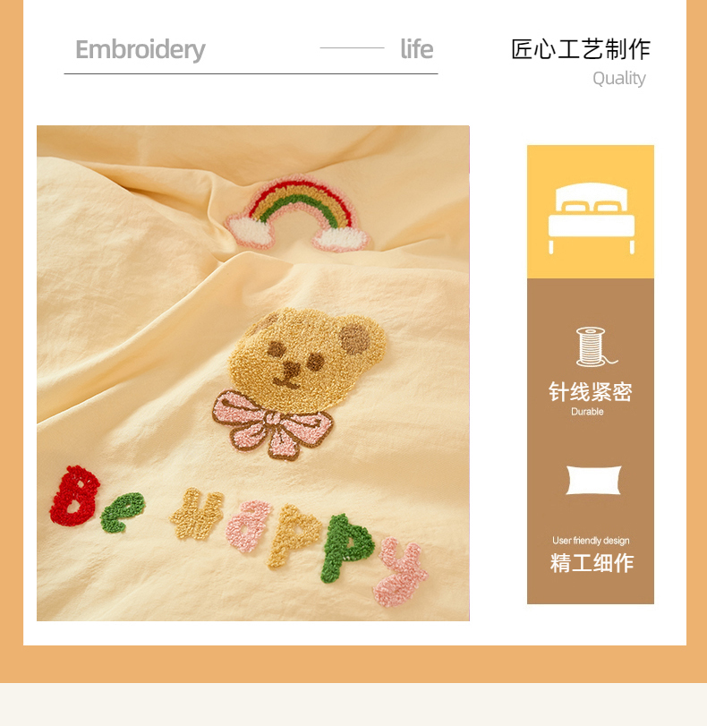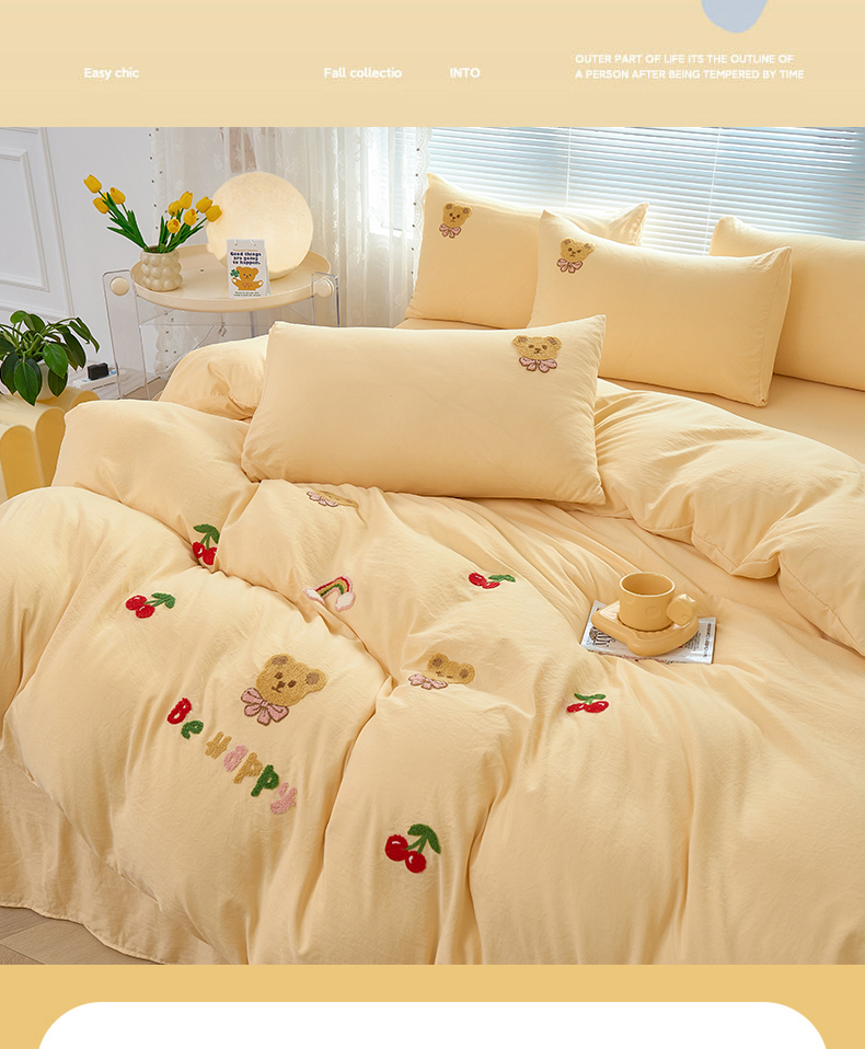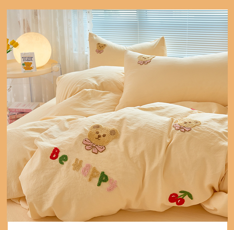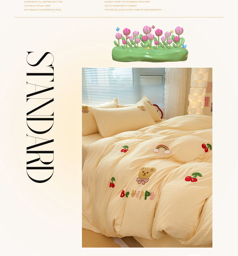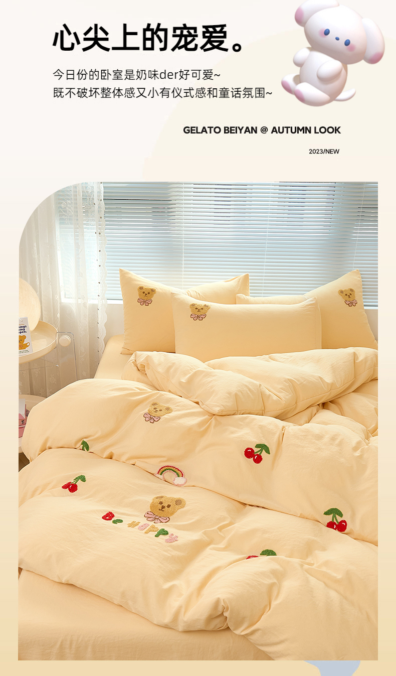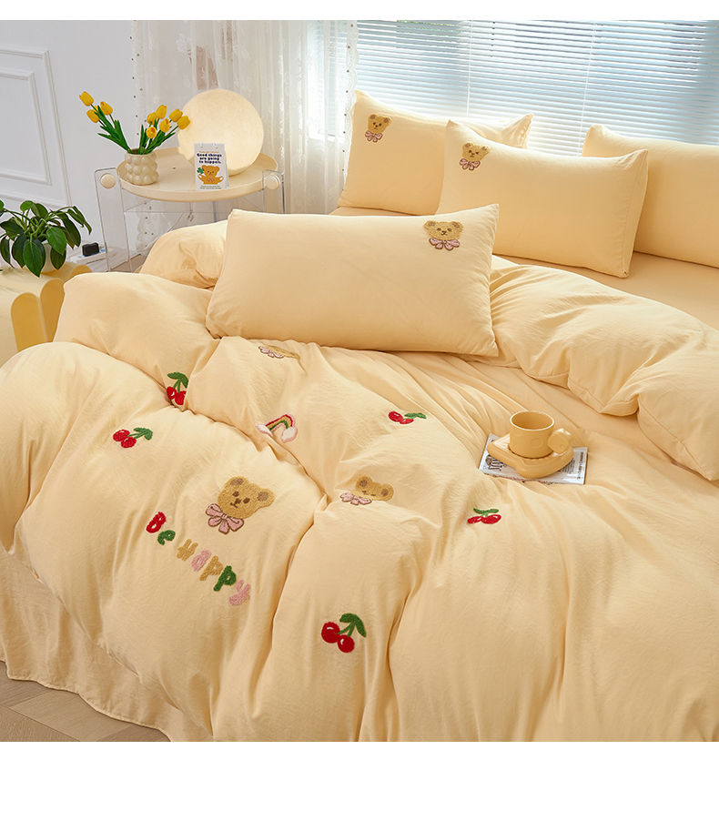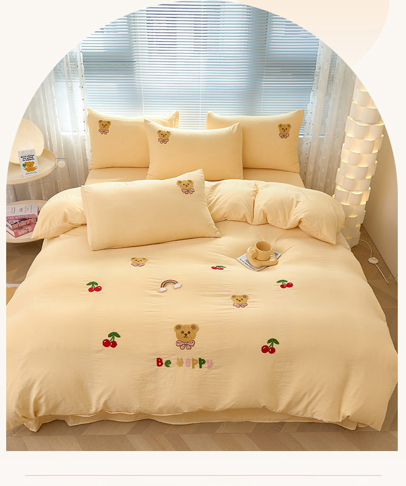 商品名称:云锦家居 2024新款水洗云朵棉立体毛巾绣四件套 樱桃啵仔