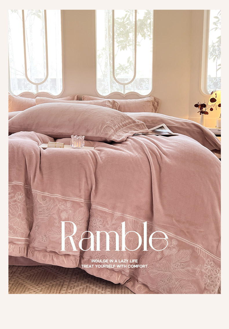 (总)乔利卡沃 2025秋冬新款轻奢高级感加厚保暖全棉纯棉磨毛重工刺绣四件套床上用品花间集,花间集-黛紫,花间集-红桃,花间集-慕蓝,花间集-清绿,花间集-柔杏,花间集-颜粉