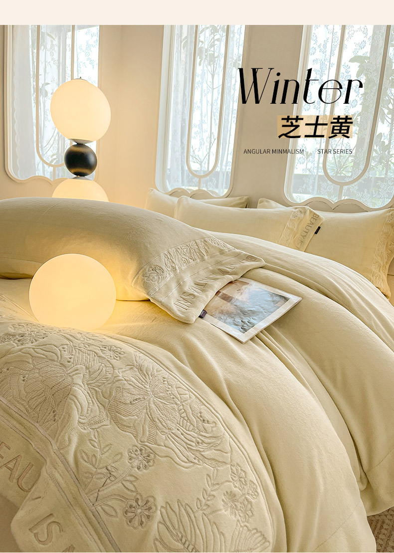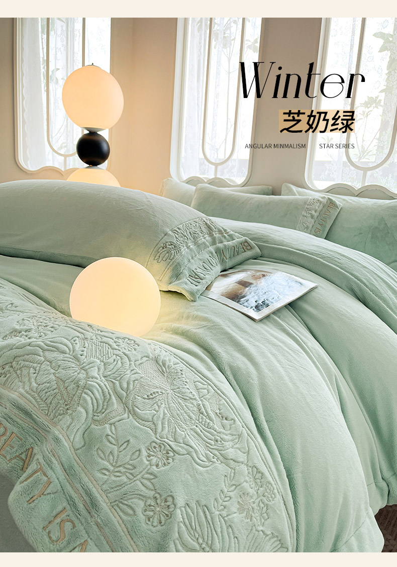 (总)乔利卡沃 2025新款直播爆款A类加厚保暖全棉纯棉磨毛四件套纯棉重工刺绣被套冬季床上用品,绮影-冰清绿,绮影-初恋粉,绮影-美人杏,绮影-时尚灰,绮影-天空蓝,绮影-香芋紫