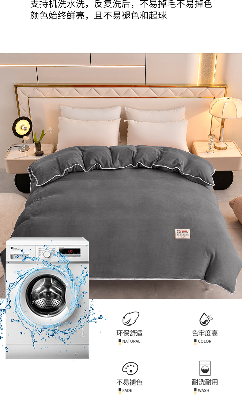 商品名称:绒品荟家纺 2025新款直播热款高克重8.5斤牛奶绒法莱绒水晶金貂法莱绒纯色四件套系列--纯色单被套 熔岩灰
