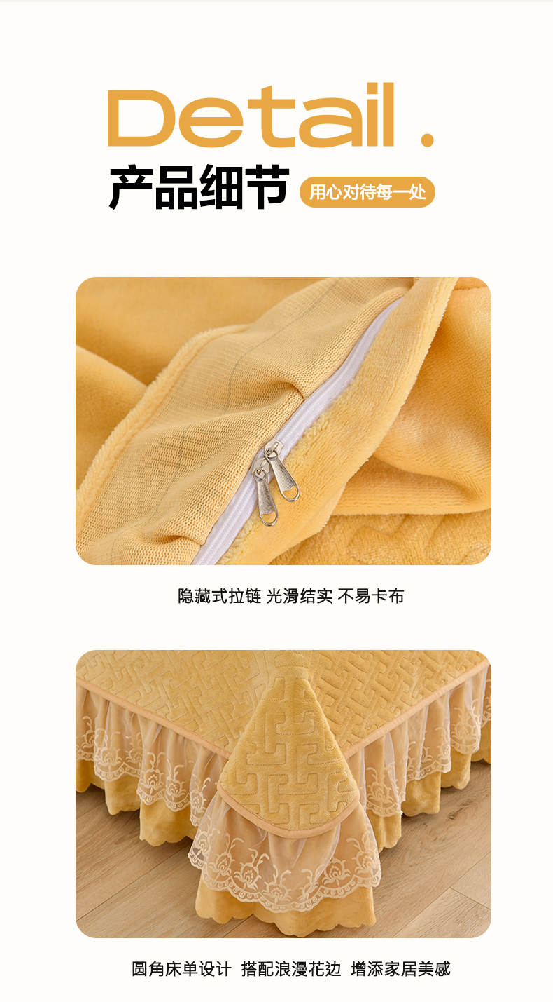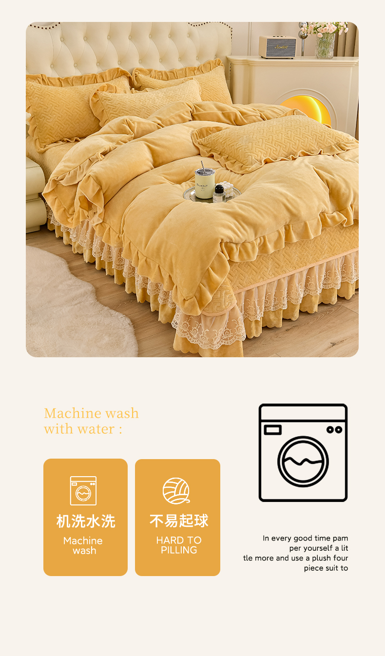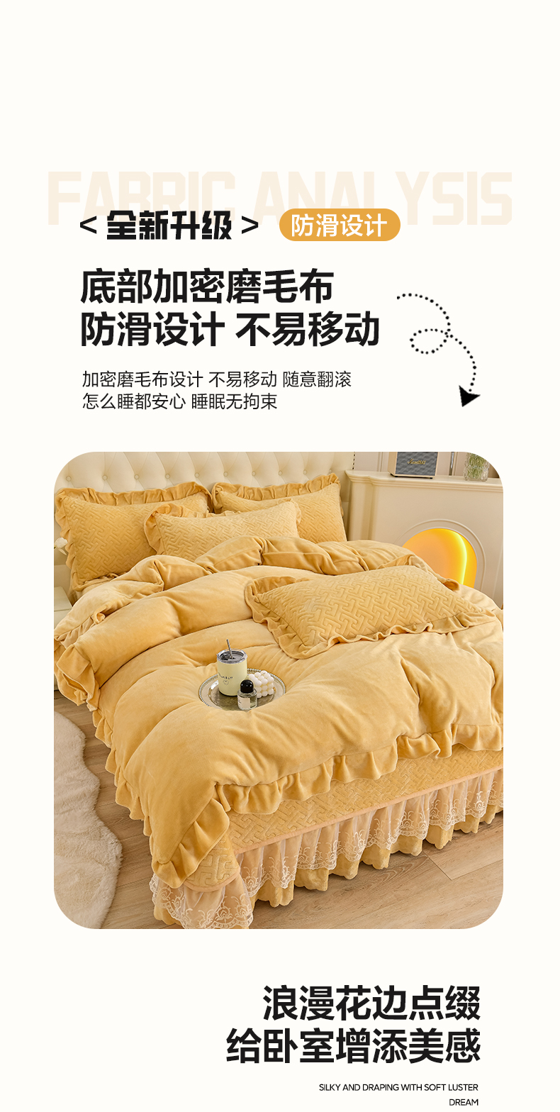 当前位置: 91家纺网 > 商品网购 > 床品套件 > 四件套 > 牛奶绒四件套 > 民新家纺 2025新款牛奶绒印花夹棉床盖四件套倾城-黄