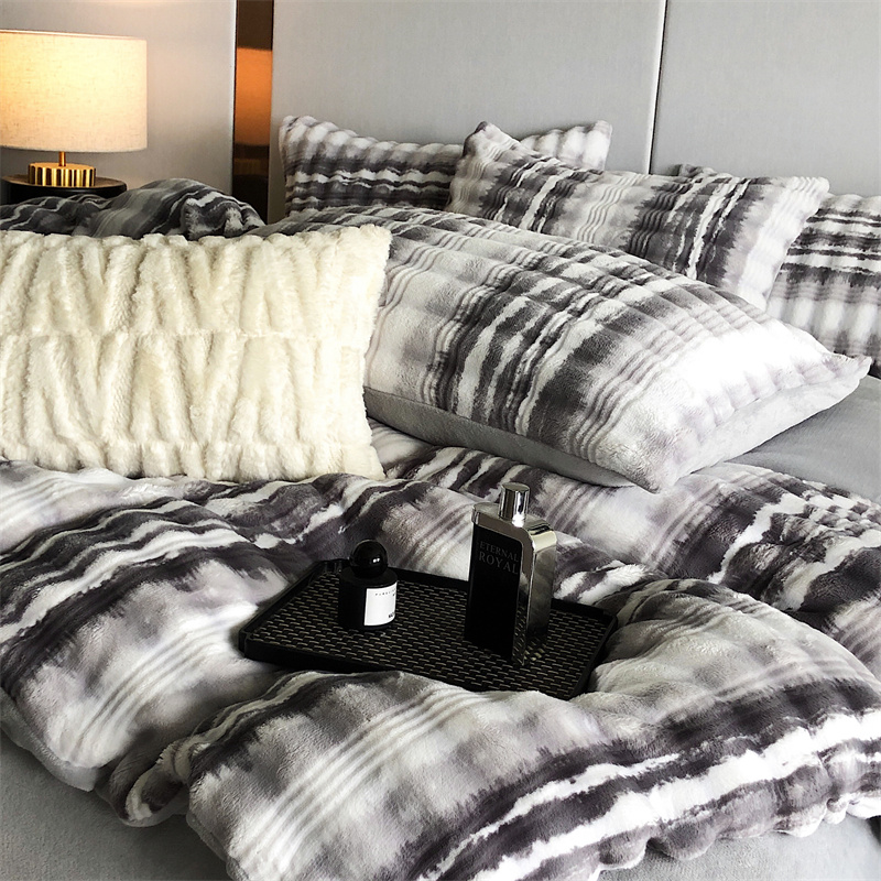 佳汐蓝家纺 2024秋冬新品—牛奶绒印花格调系列 格调 灰(暗合)