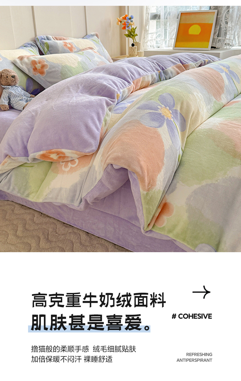 卡普二店 2024新款牛奶绒印花四件套 紫韵花开