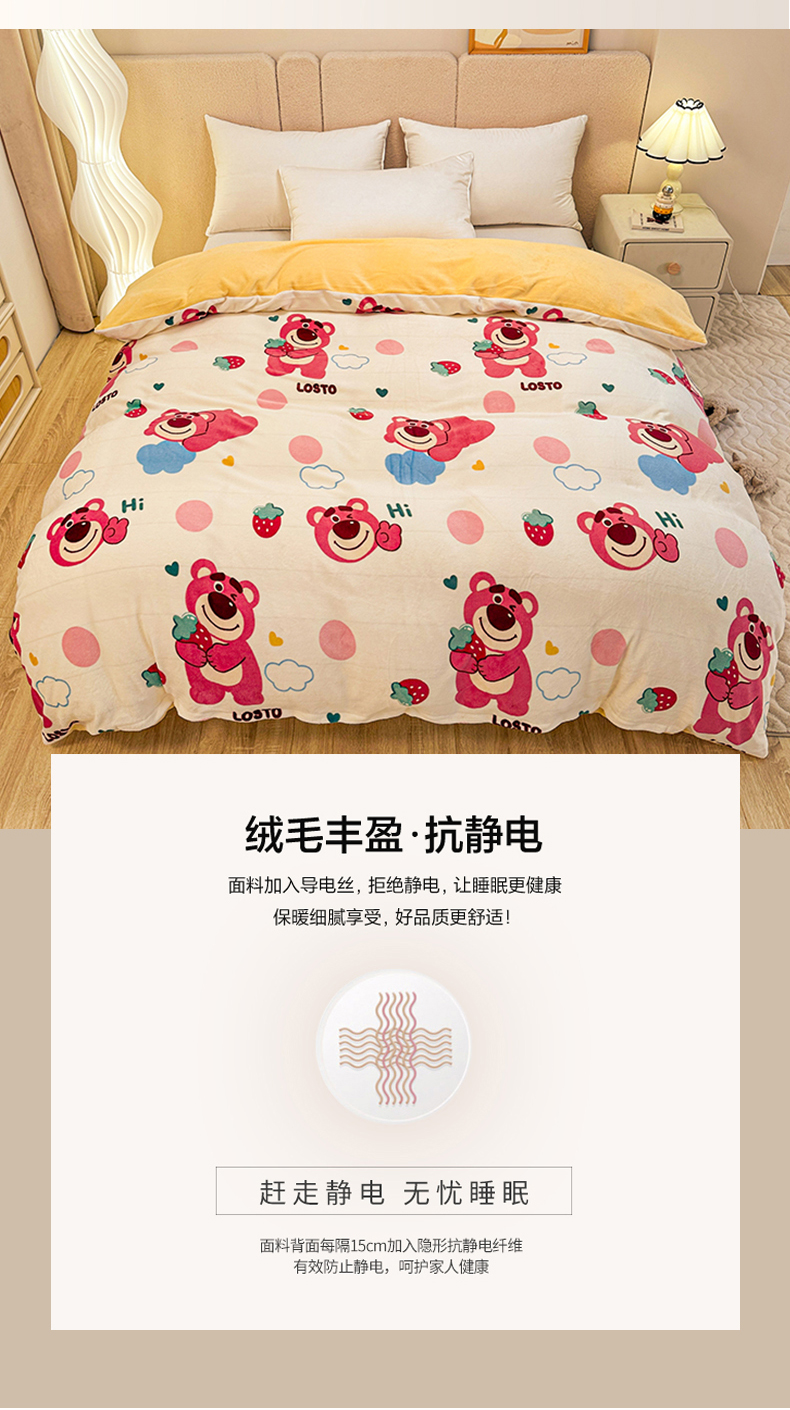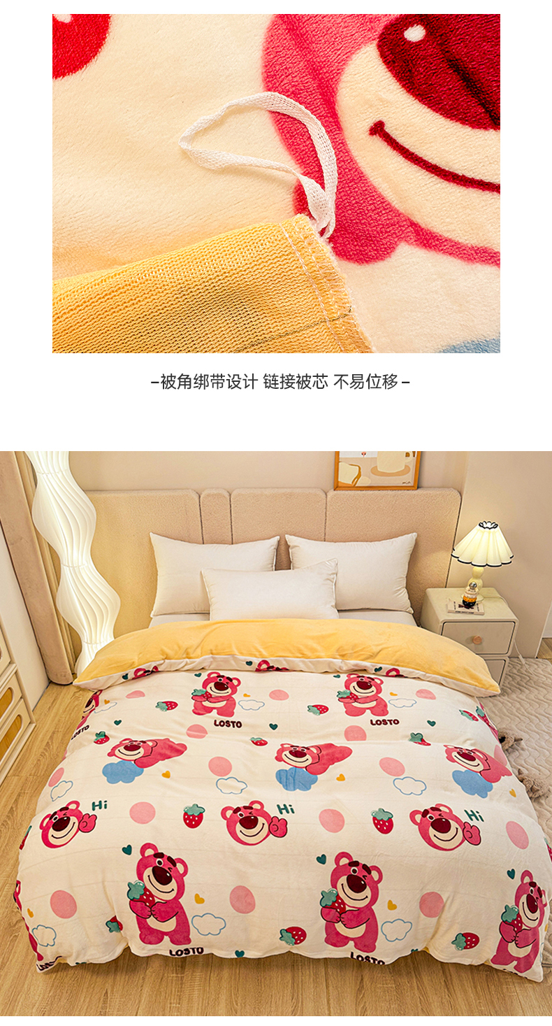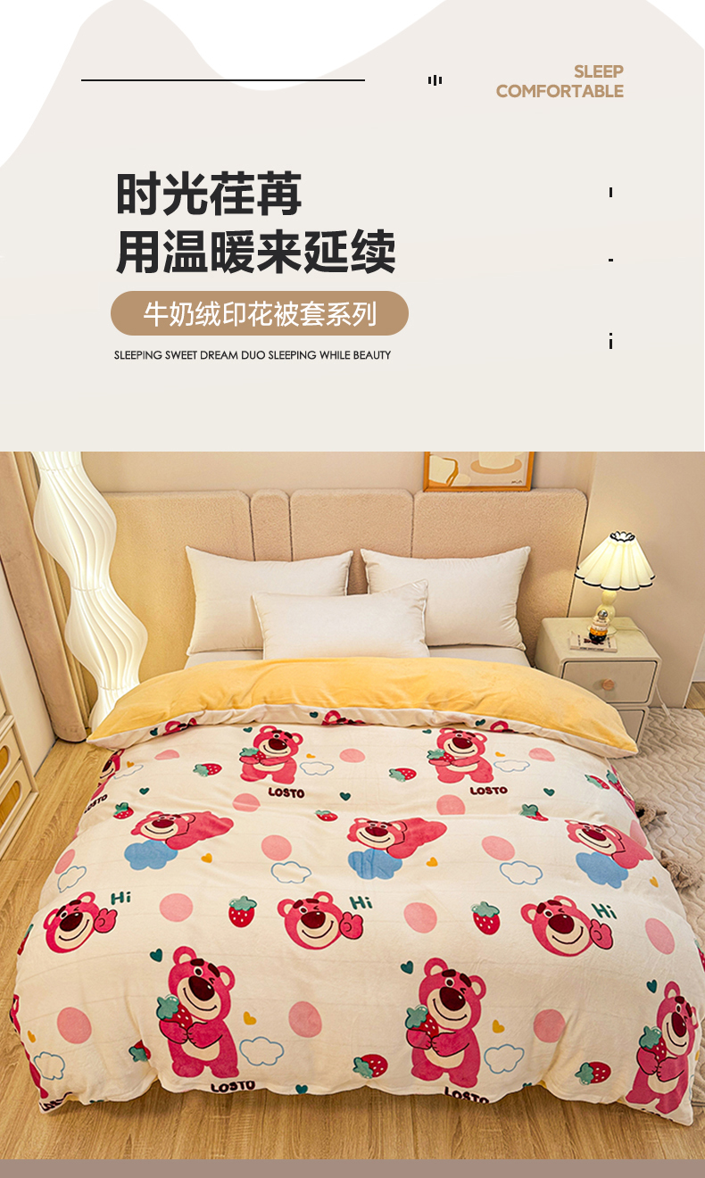 卡普二店 2024新款牛奶绒印花单被套 萌趣熊宝
