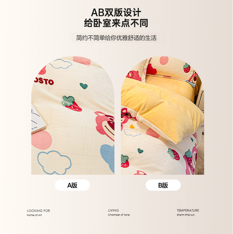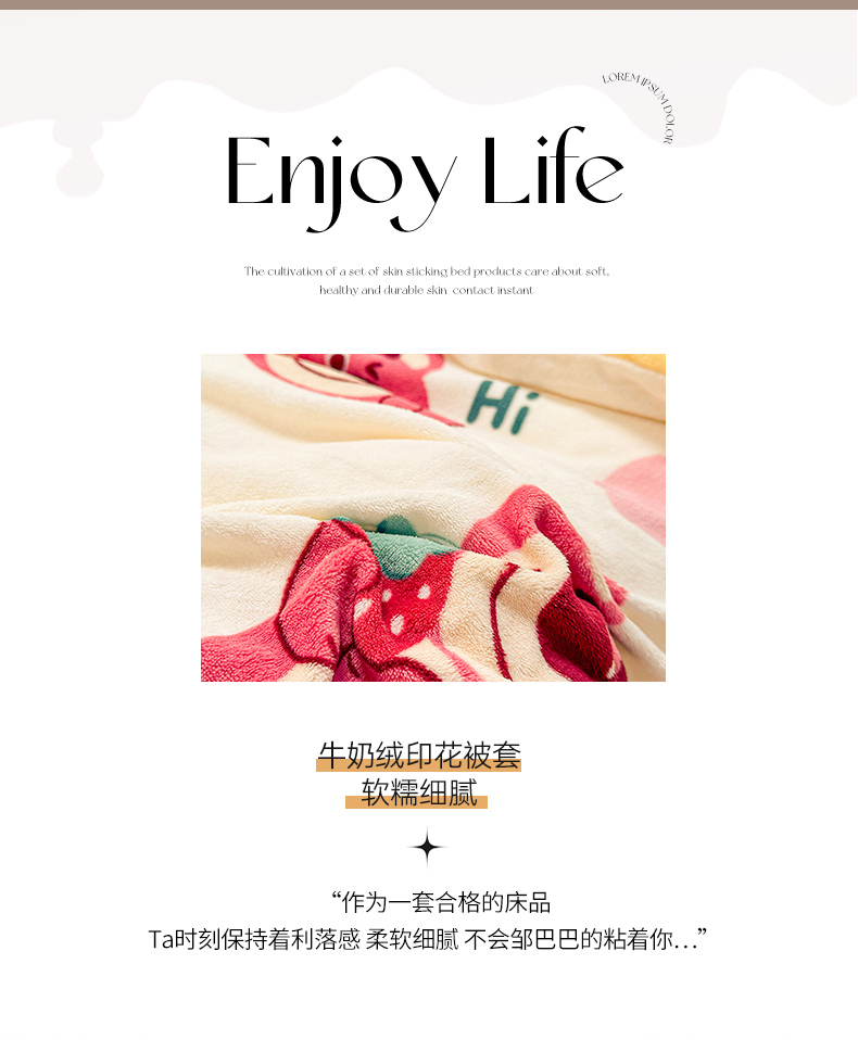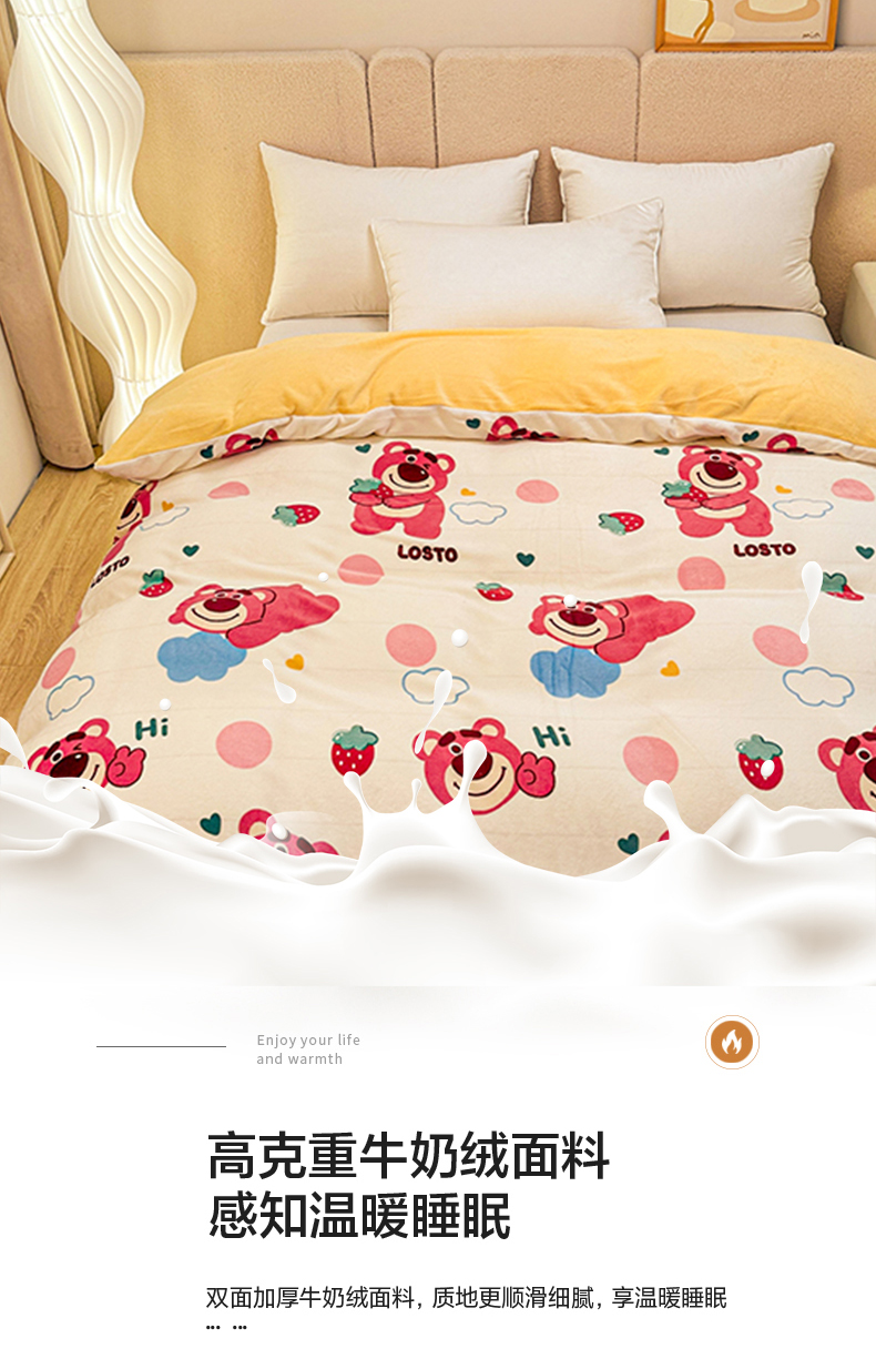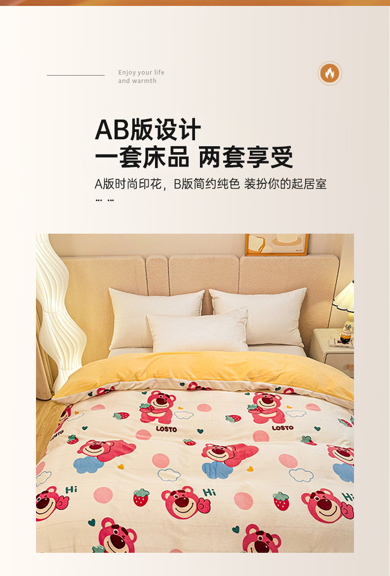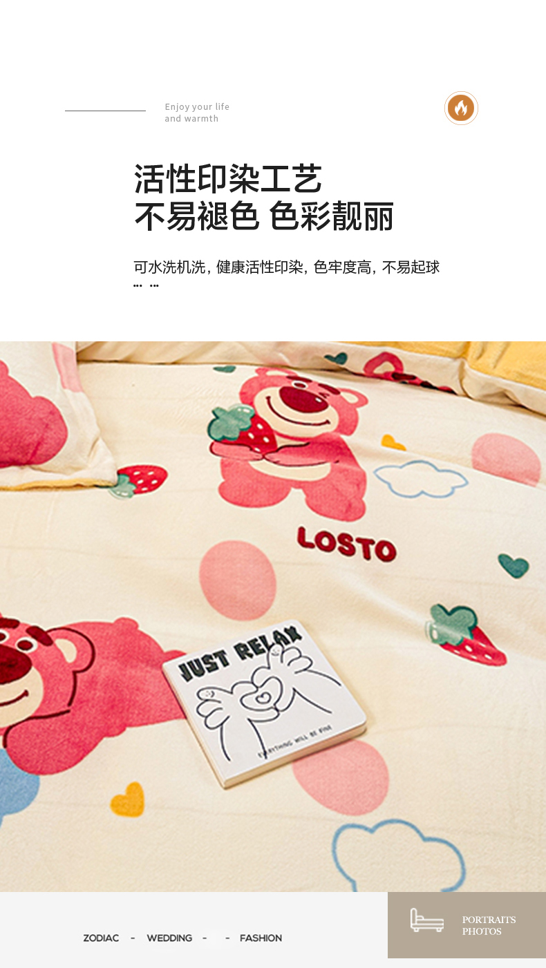 卡普二店 2024新款牛奶绒印花单被套 萌趣熊宝