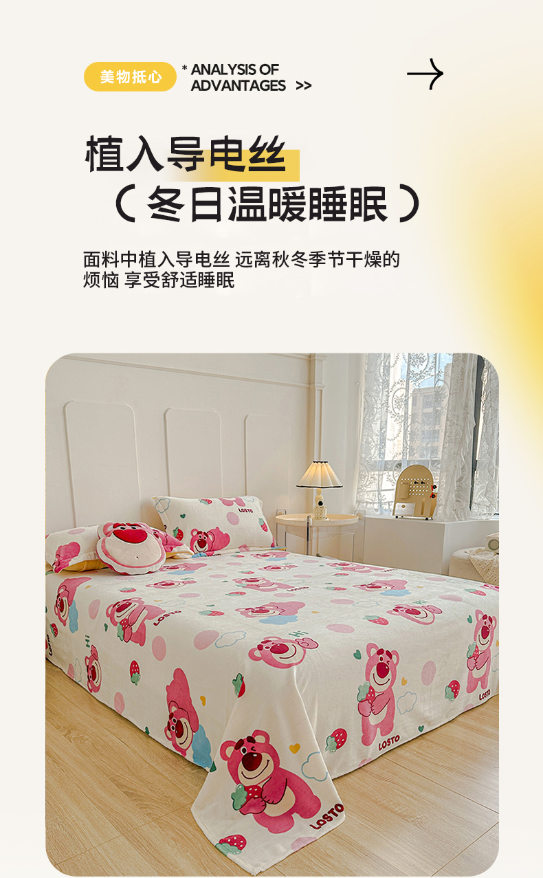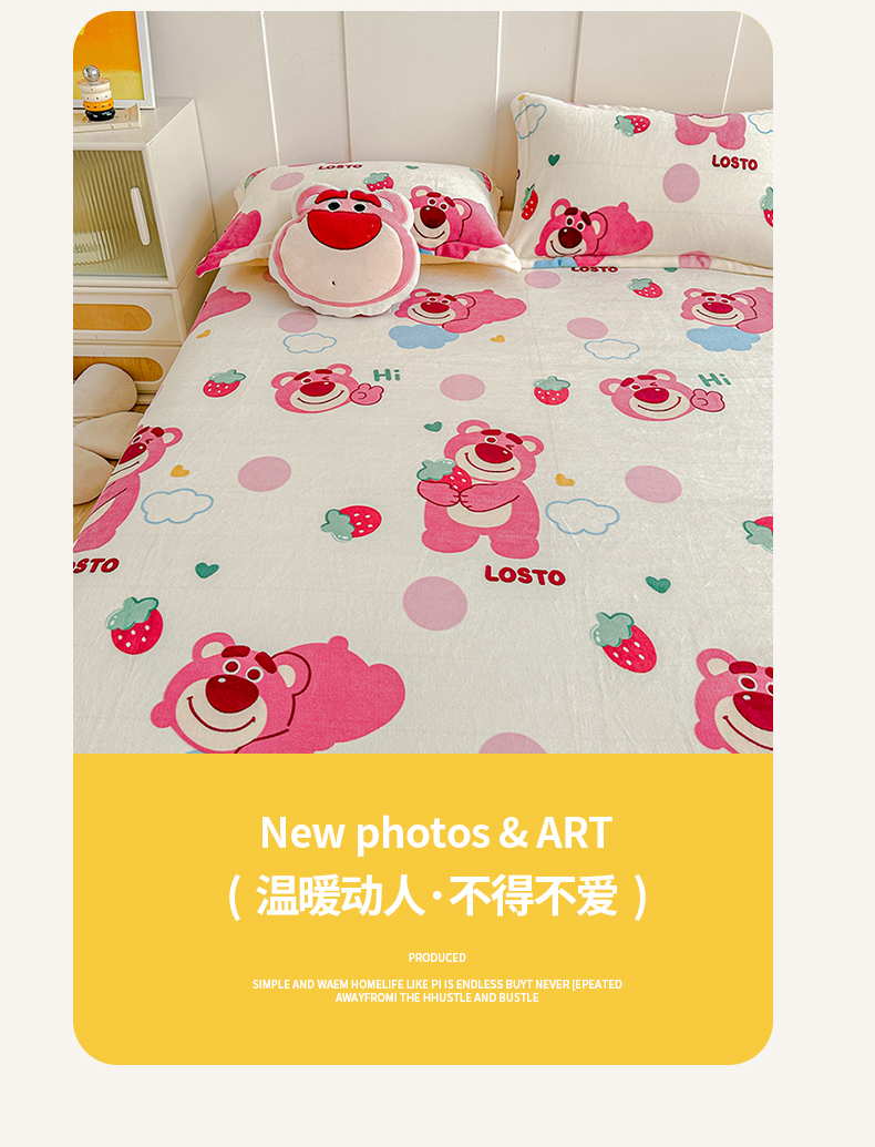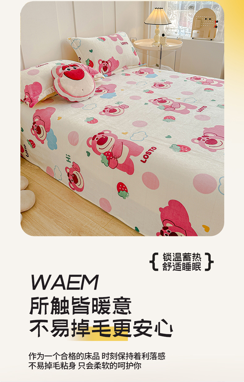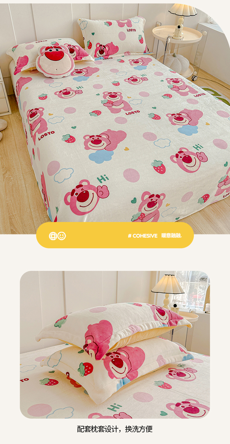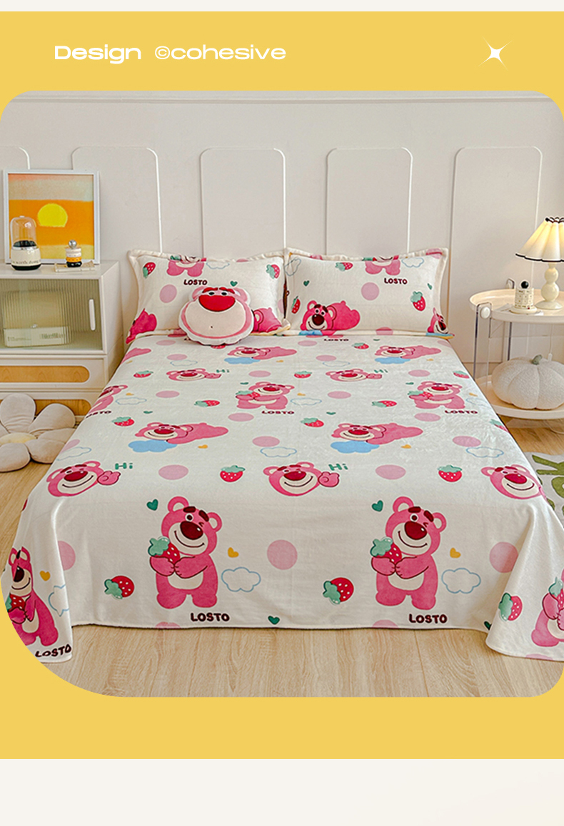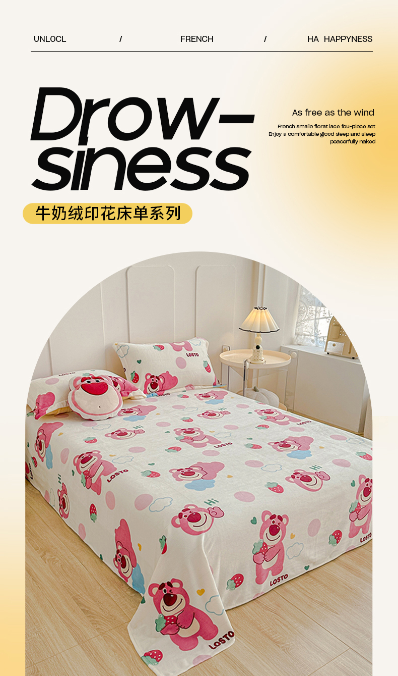 卡普二店 2024新款牛奶绒印花单床单 萌趣熊宝