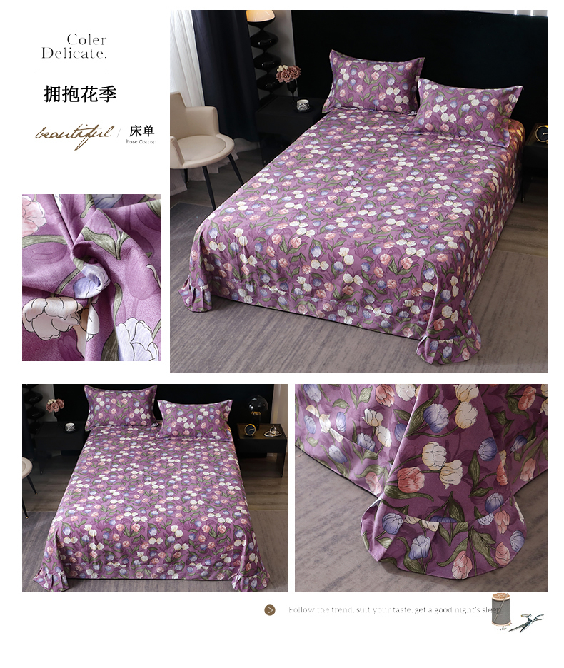 商品名称:贝兰仙奴 2024新款亲肤舒适全棉磨毛多规格系列单床单 拥抱花季