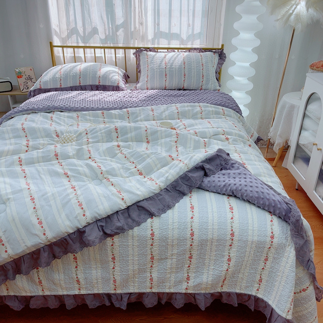 (总)暖居 2026新款大尺寸双层纱高温砂洗245X265床盖三件套,车厘子,粉绿格,洛璃,米妮,旺旺队,小丸子,樱桃可可,饼干熊,木马,小星星