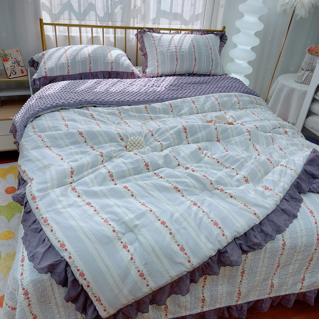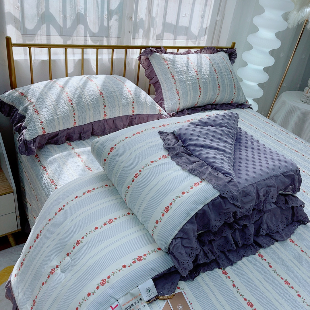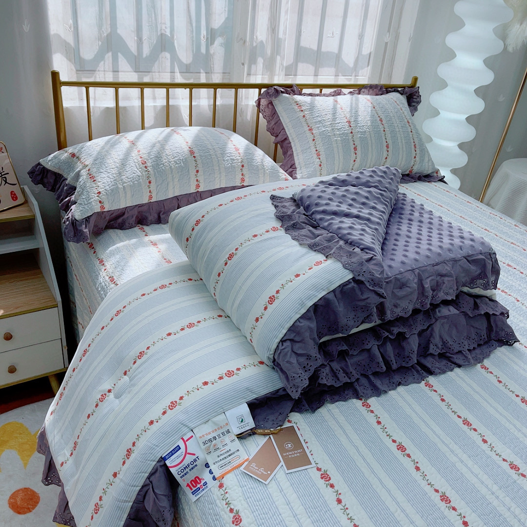 商品名称:暖居 2024暖居韩版纯棉豆豆被高温砂洗床盖四件套同款全棉被套白兰地