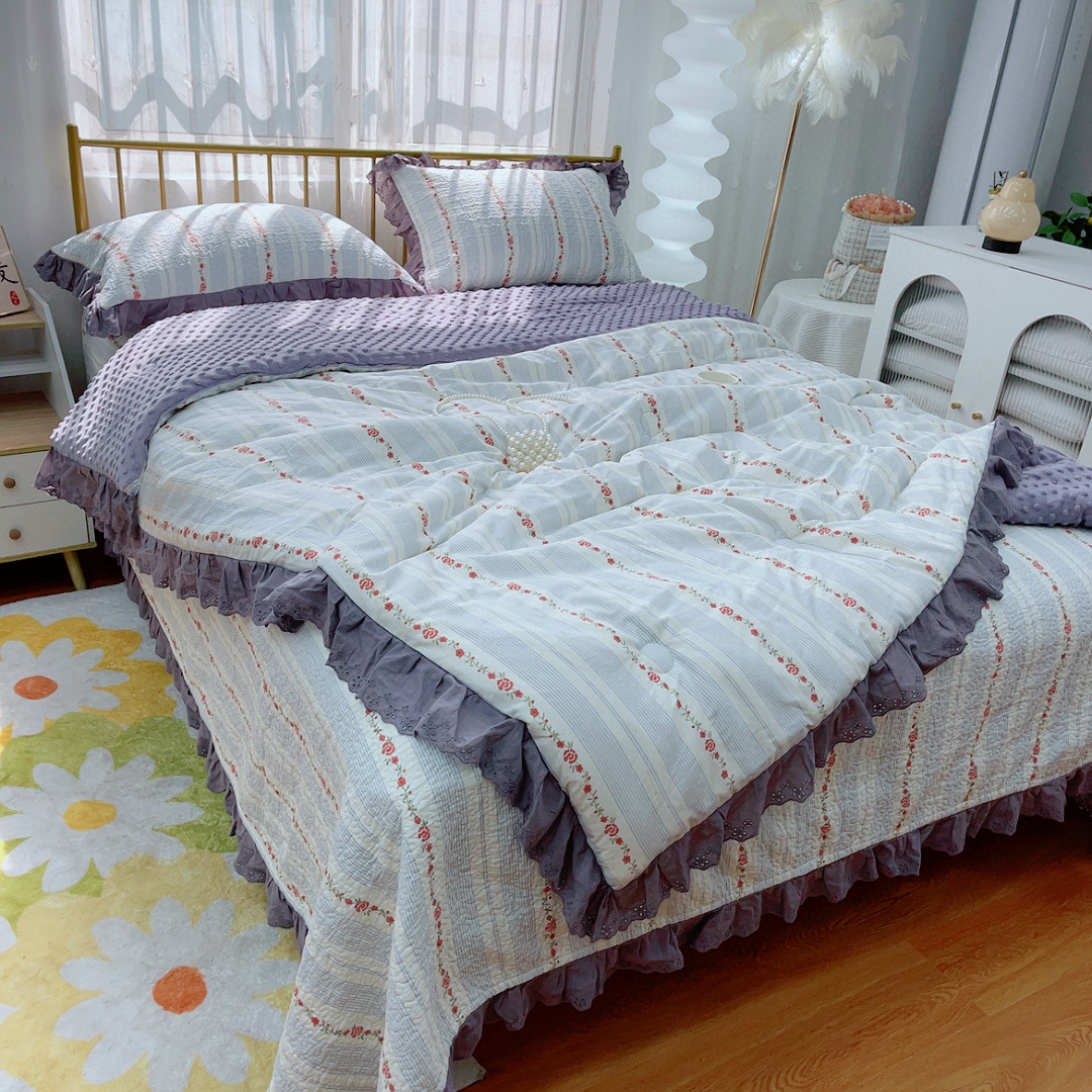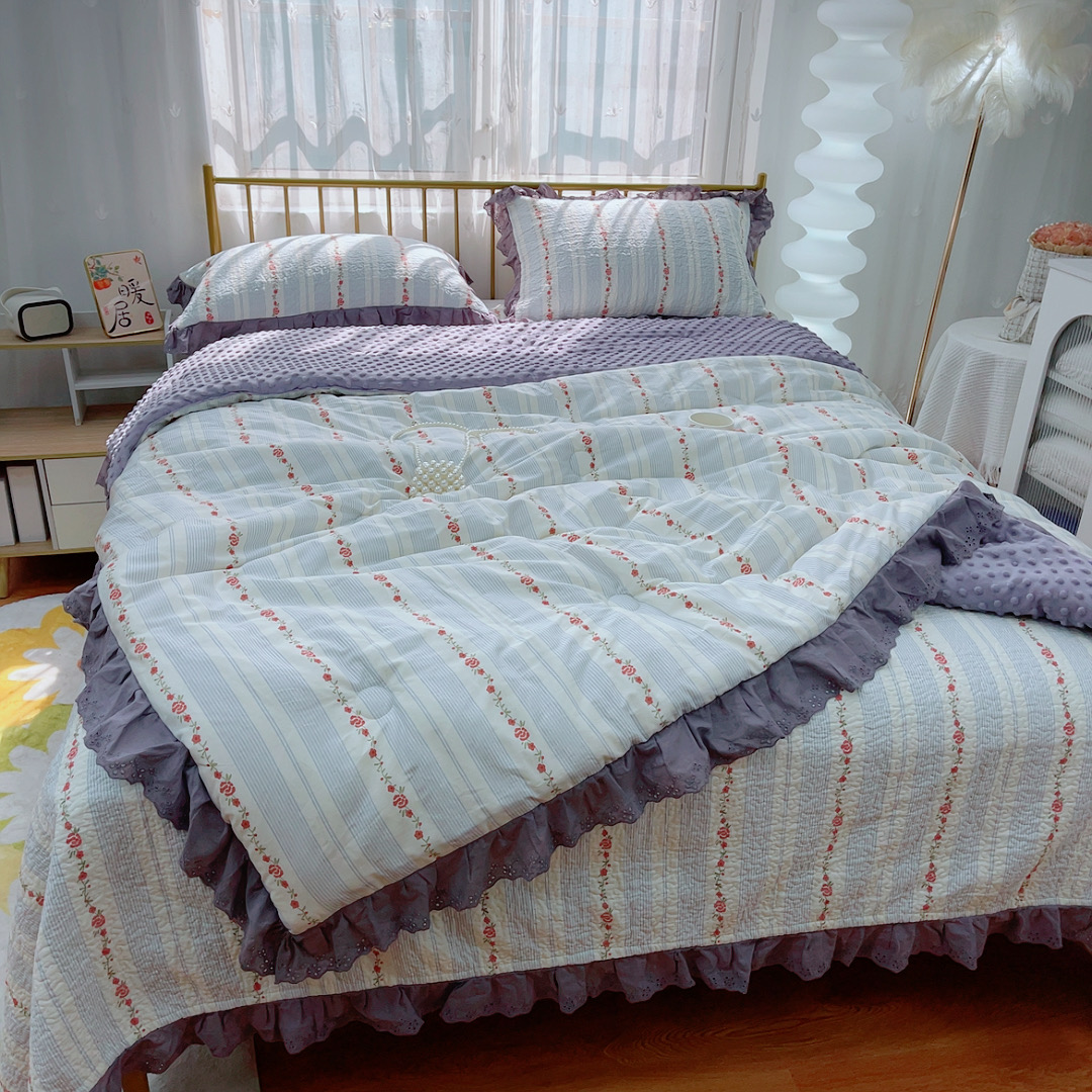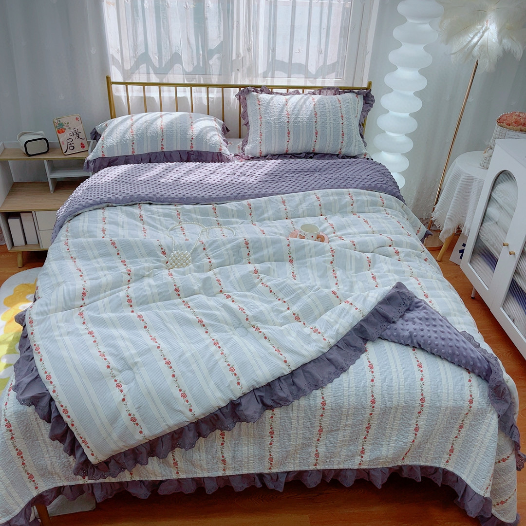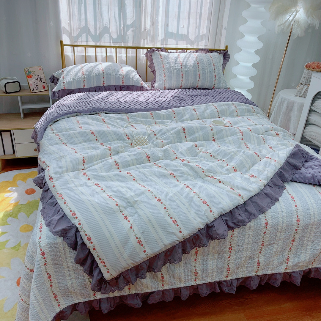 商品名称:暖居 2024暖居韩版纯棉豆豆被高温砂洗床盖四件套同款全棉被套白兰地