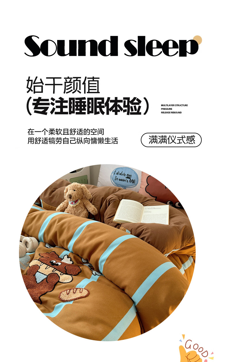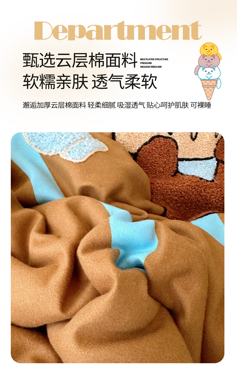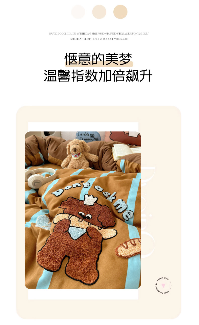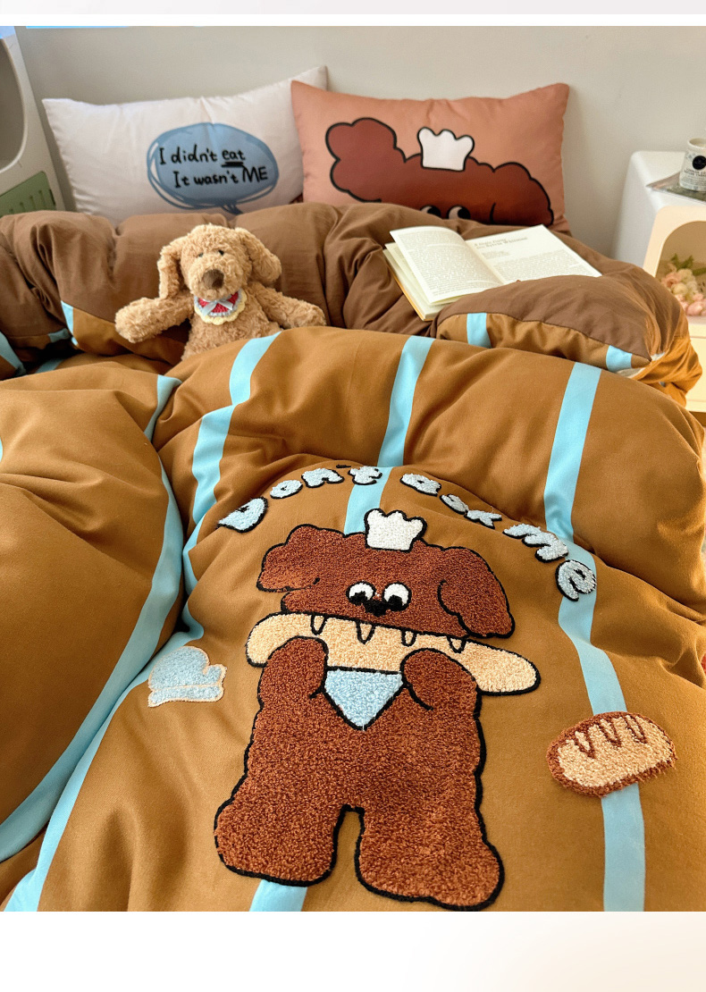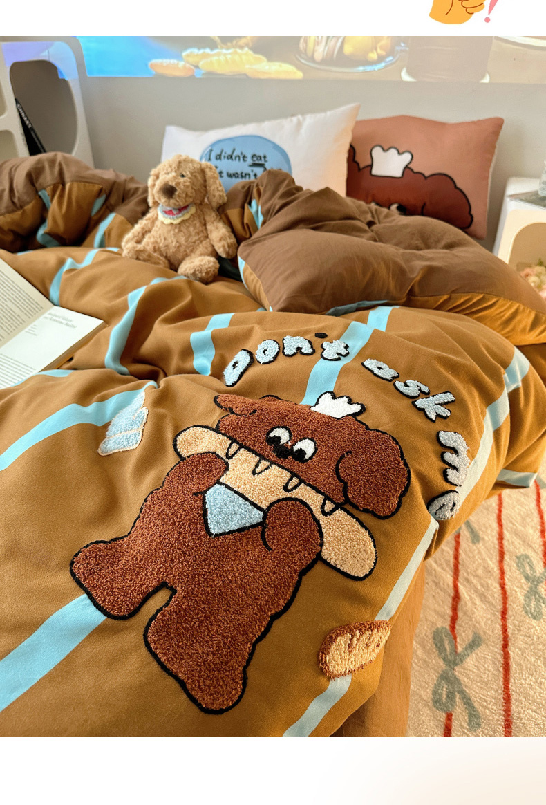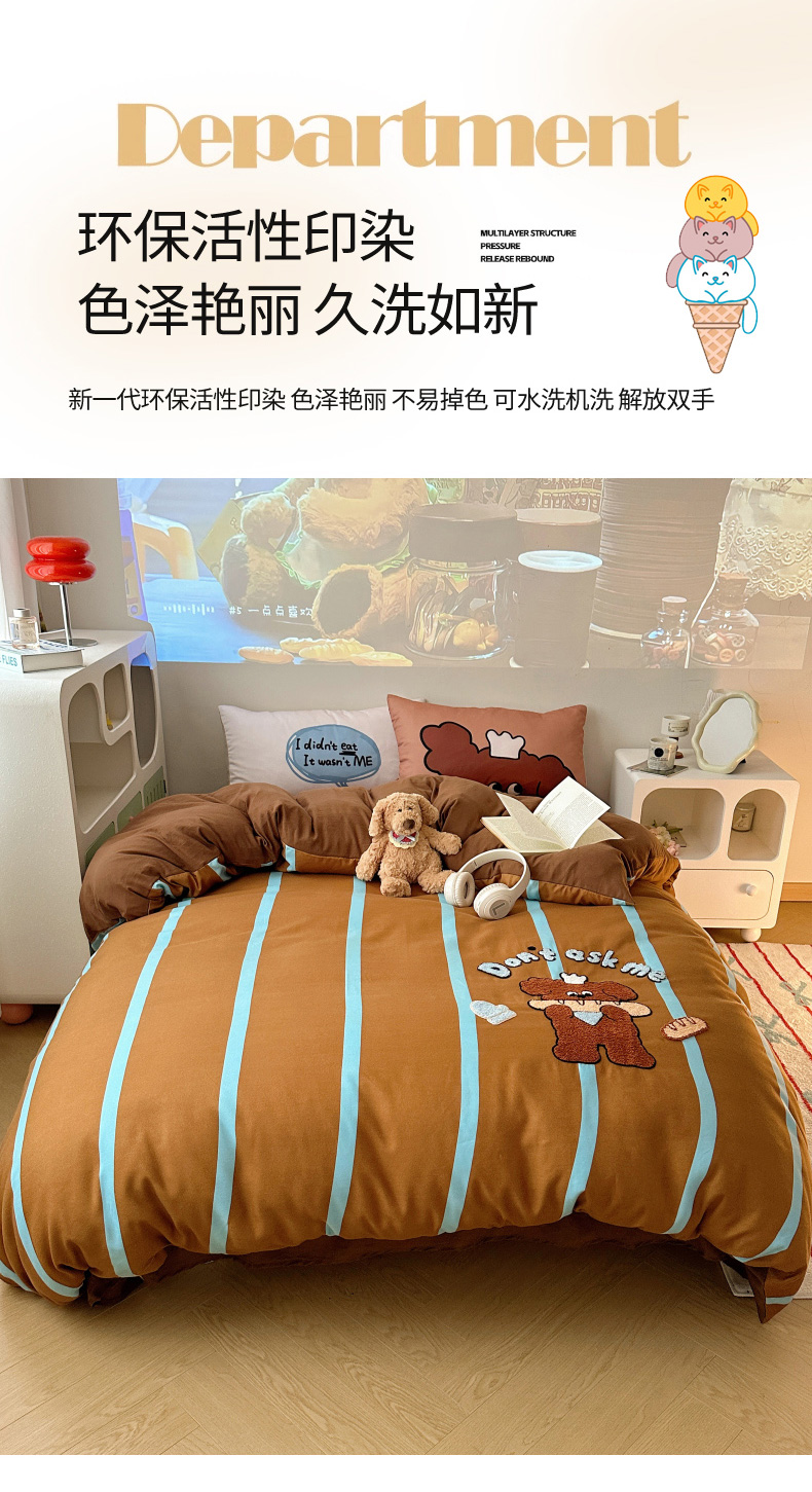 当前位置: 91家纺网 > 商品网购 > 床品套件 > 四件套 > 普通磨毛四件套 > 花伞 2024新款毛巾绣卡通水洗棉磨毛四件套 法棍狗-蓝棕条