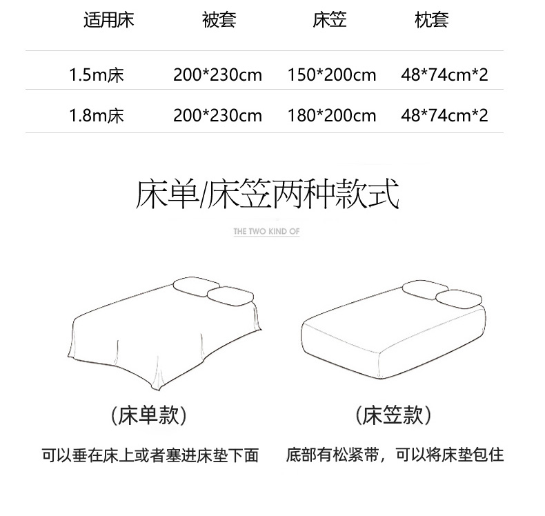 1.8m床笠款四件套 (被套200*230) | ¥70.00 |