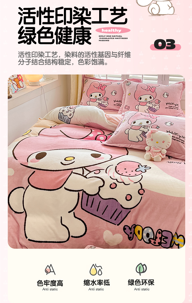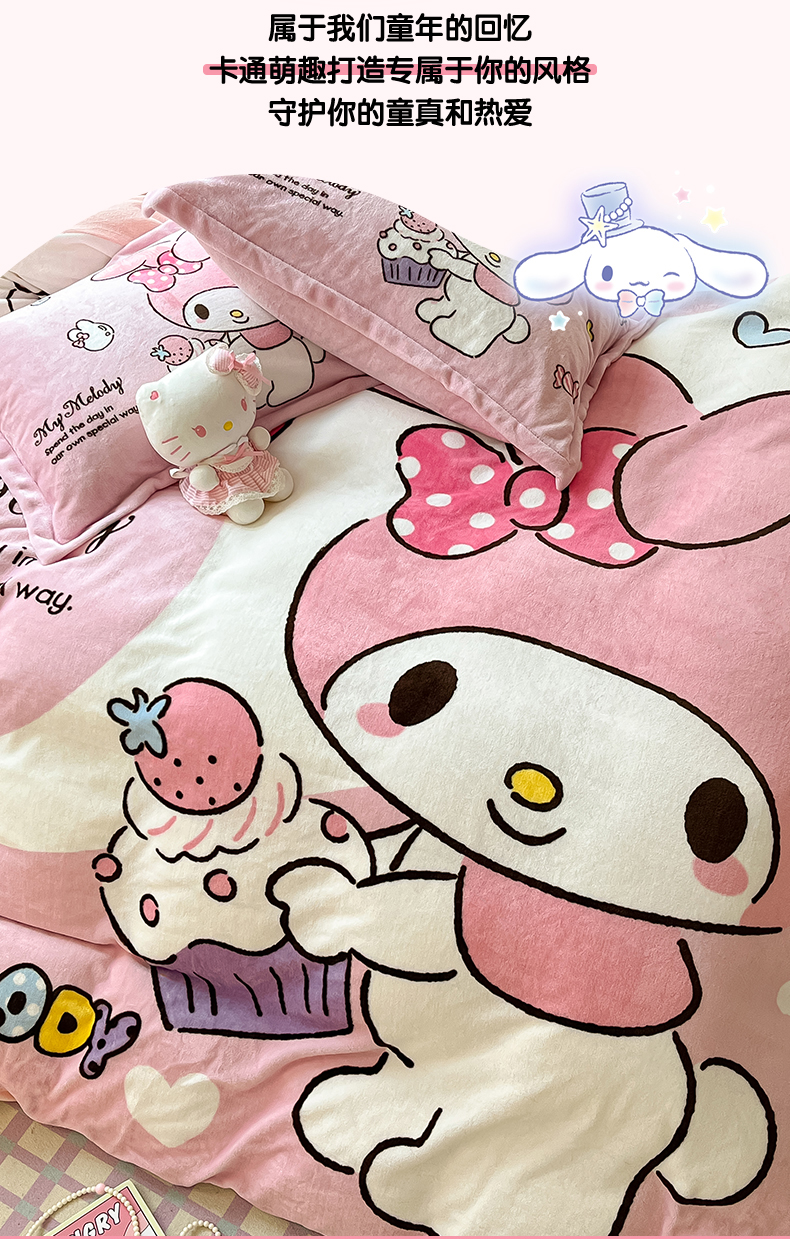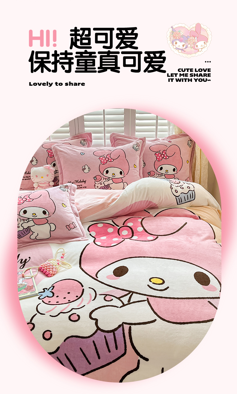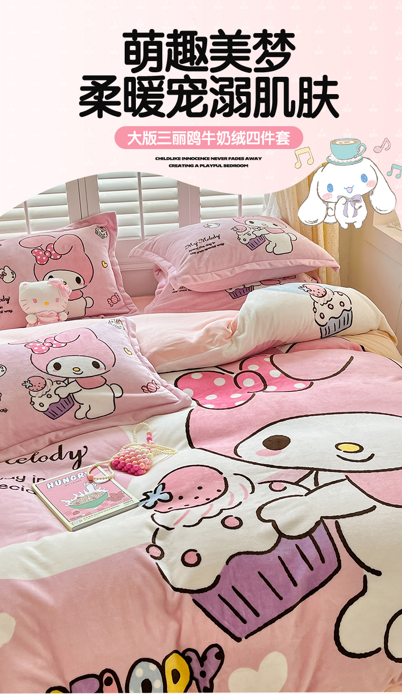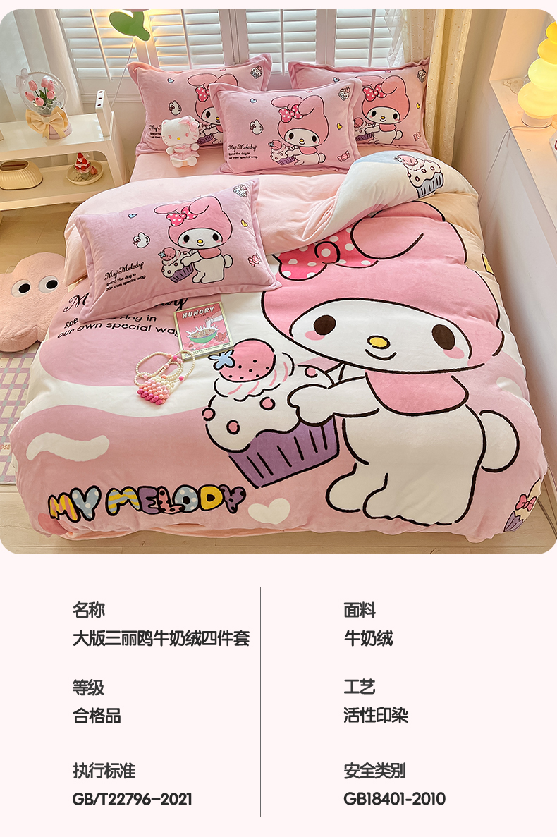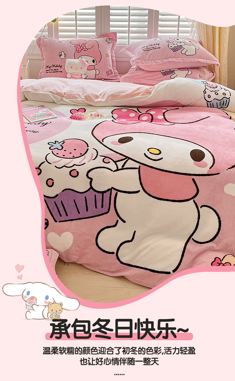 商品名称:星座家纺 2025新款大版三丽鸥牛奶绒四件套 美乐蒂-大版