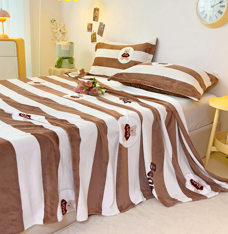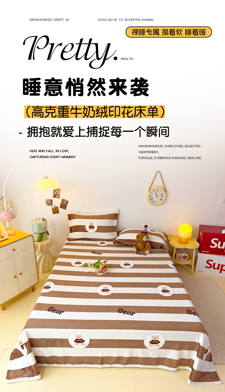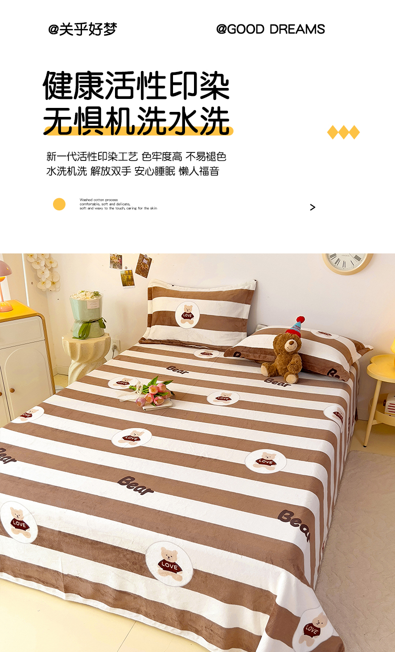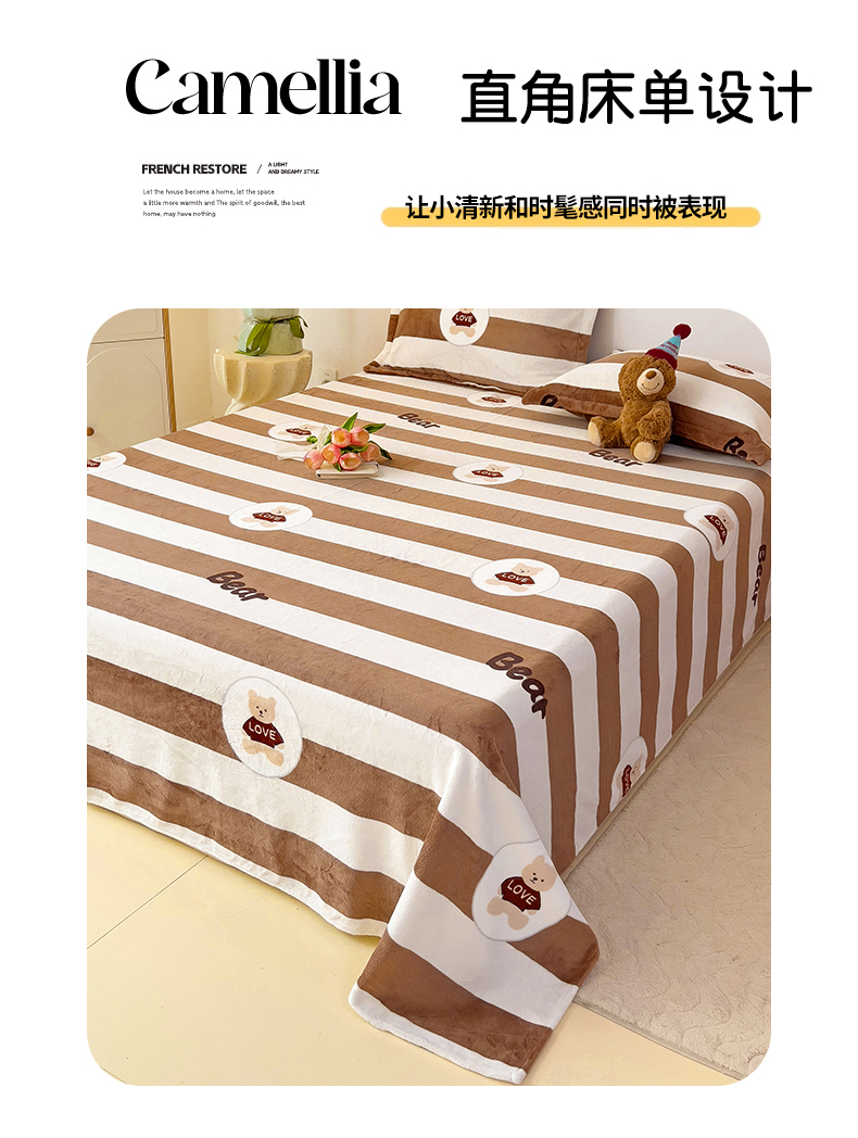 大柏树 2025新款A类高克重亲肤舒适牛奶绒印花四件套-单床单可定制 布琪小熊-咖