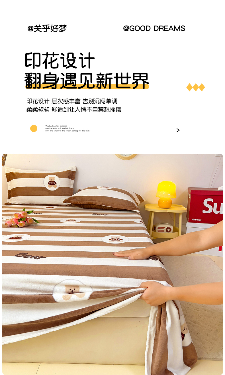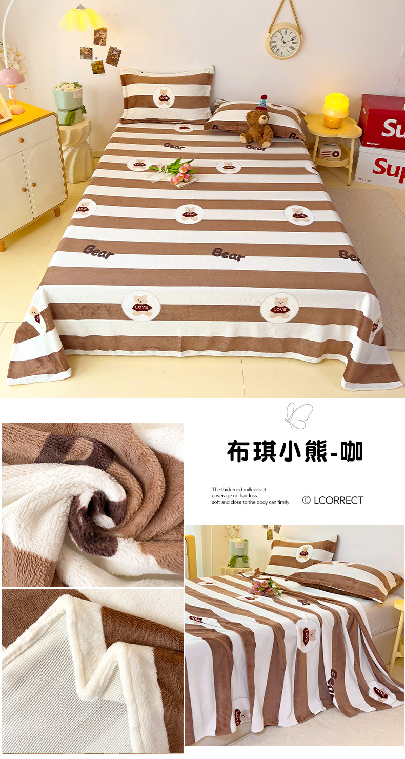 商品名称:大柏树 2025新款A类高克重亲肤舒适牛奶绒印花四件套-单床单可定制 布琪小熊-咖