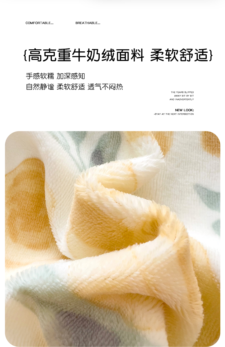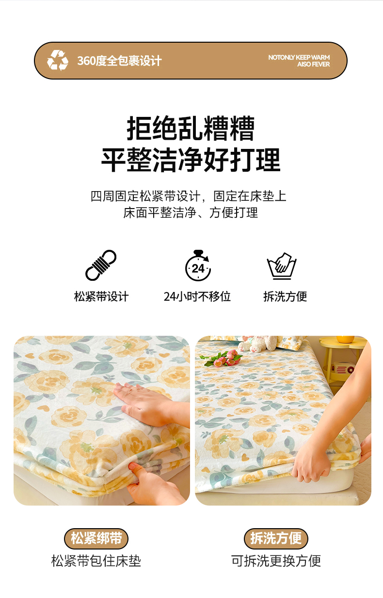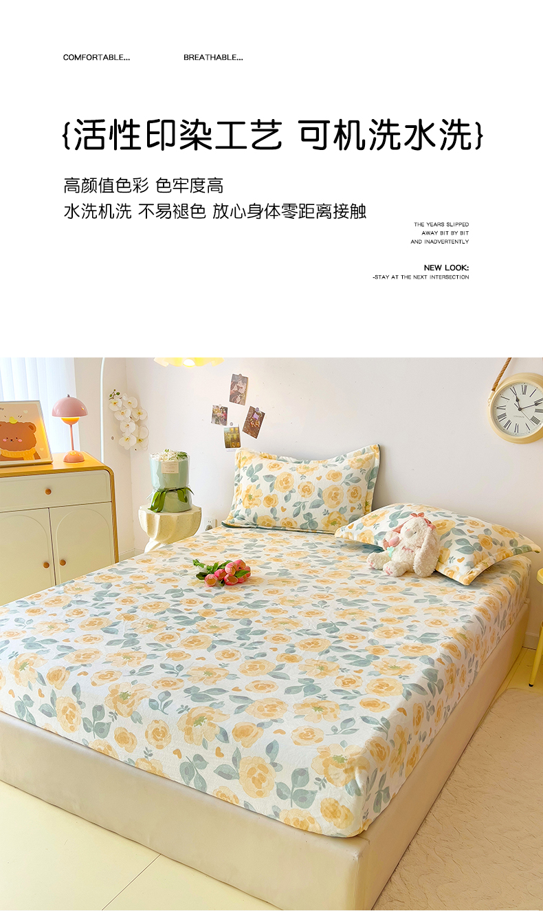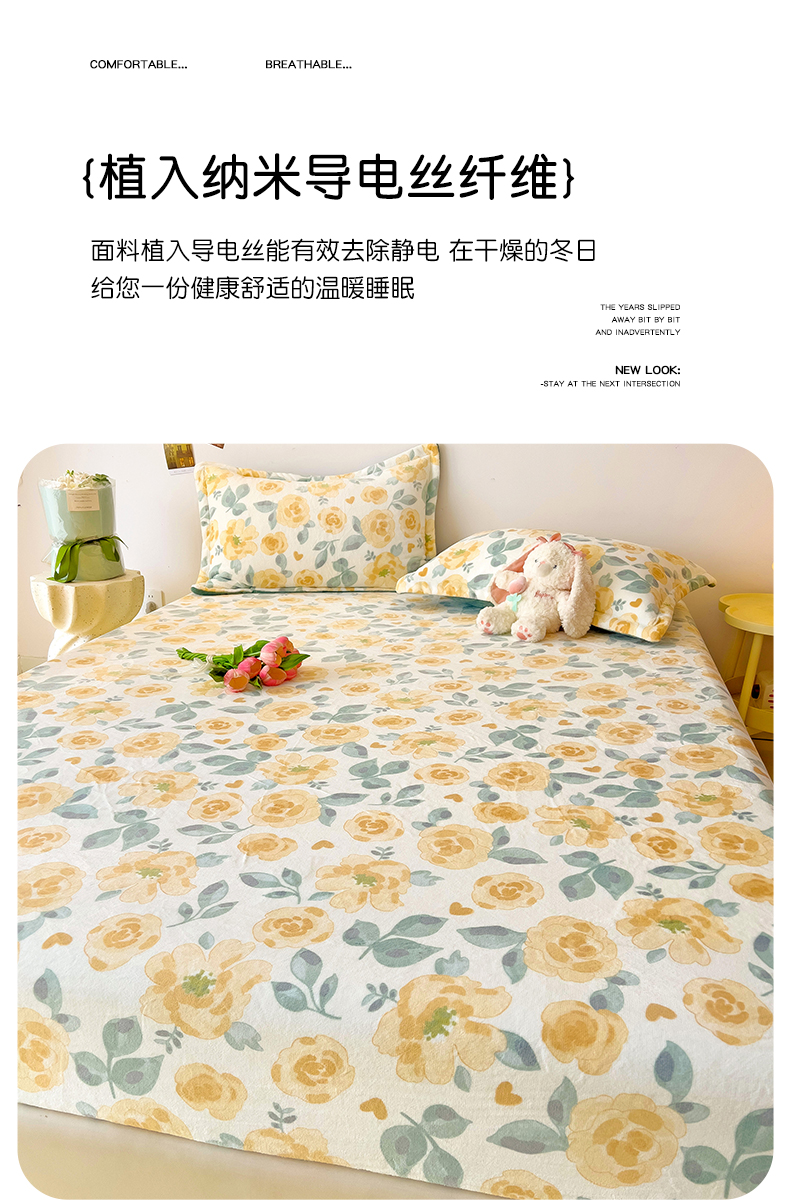 商品名称:大柏树 2025新款A类高克重亲肤舒适牛奶绒印花四件套-单床笠可定制 朵柔-黄