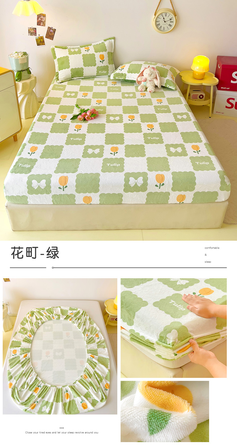 大柏树 2025新款A类高克重亲肤舒适牛奶绒印花四件套-单床笠可定制 朵柔-黄