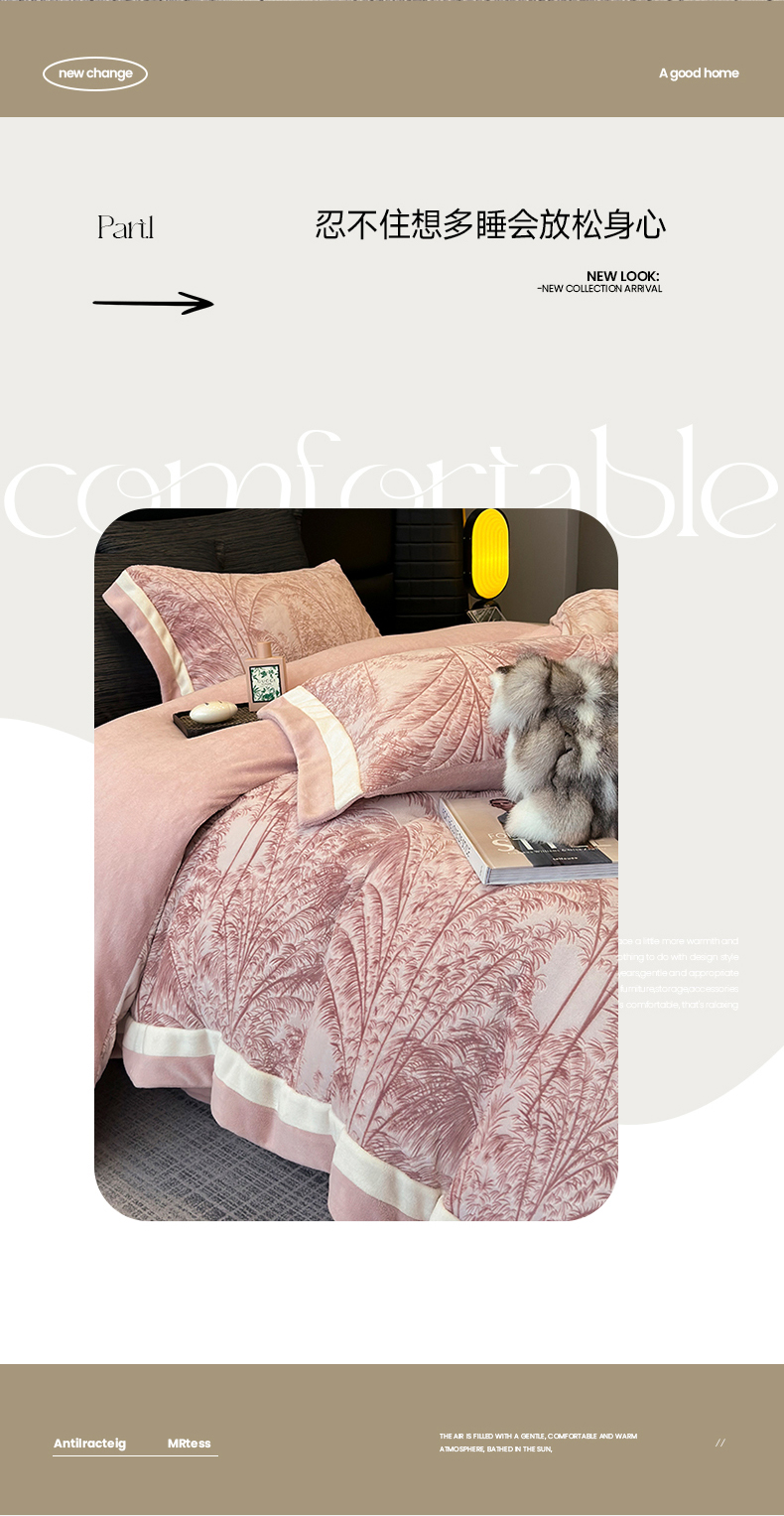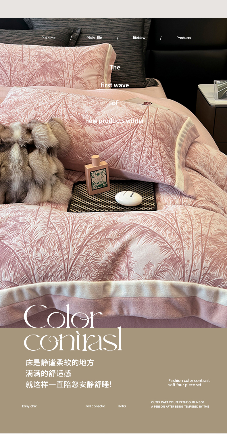 (总)若未家居 LOVEWE HOUSE 2025新款轻奢意式风仿真貂绒床盖四件套A版400克B版260克-北国雪乡,北国雪乡 暗夜灰,北国雪乡 咖,北国雪乡 驼