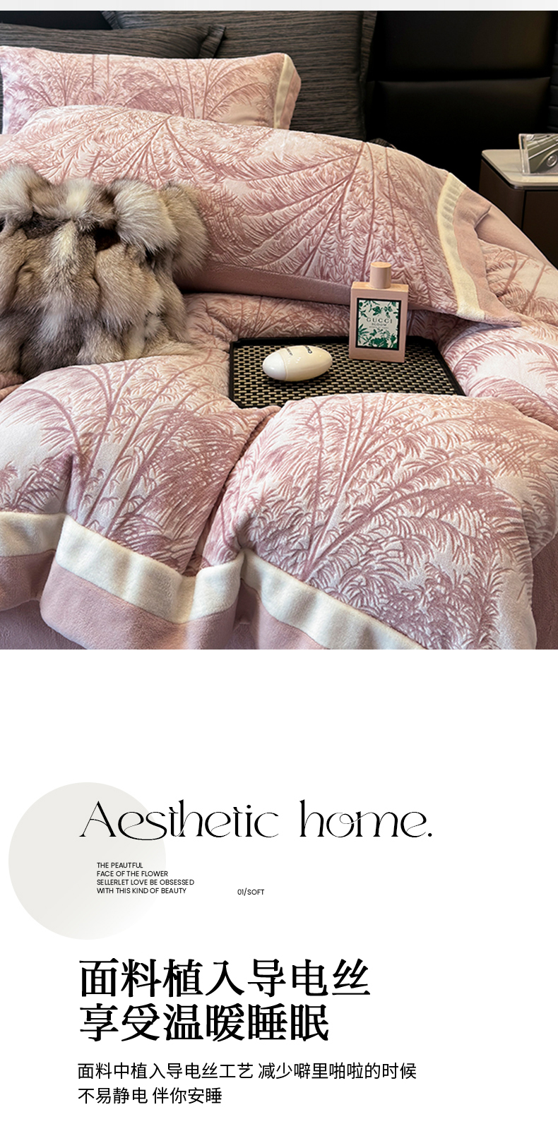 (总)若未家居 LOVEWE HOUSE 2025新款蝴蝶风仿真貂绒床盖四件套A版400克B版260克-月光女神,月光女神 米杏,月光女神 星空灰