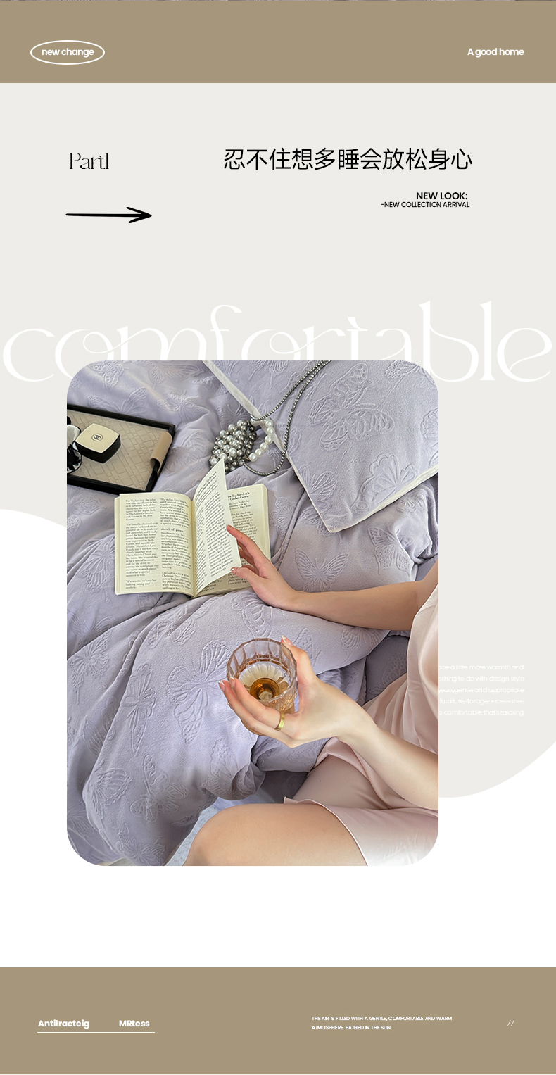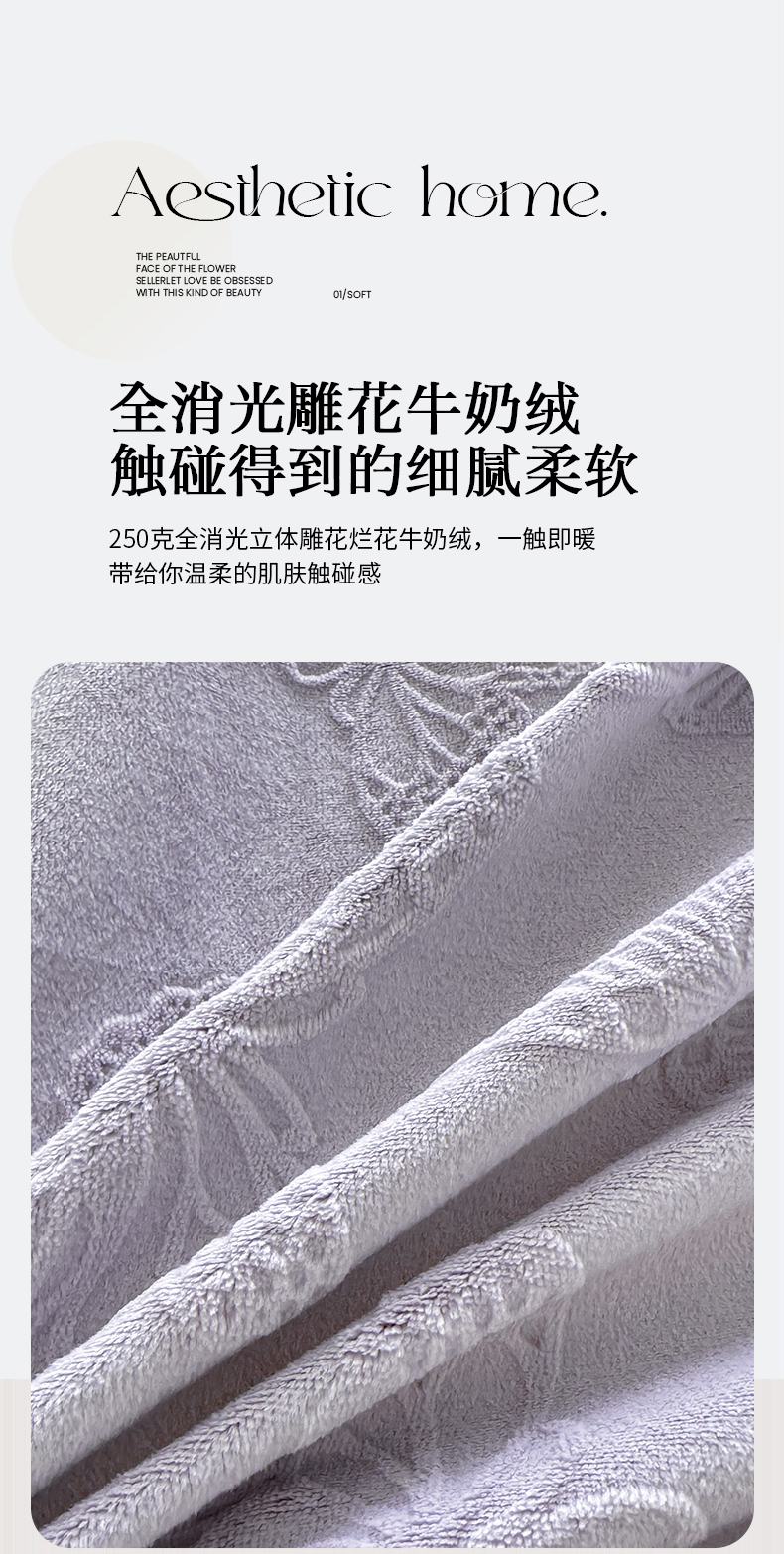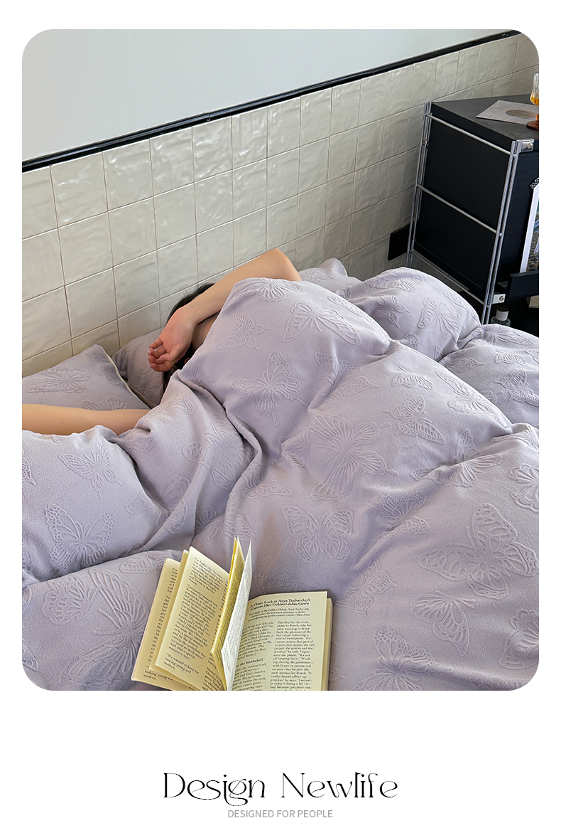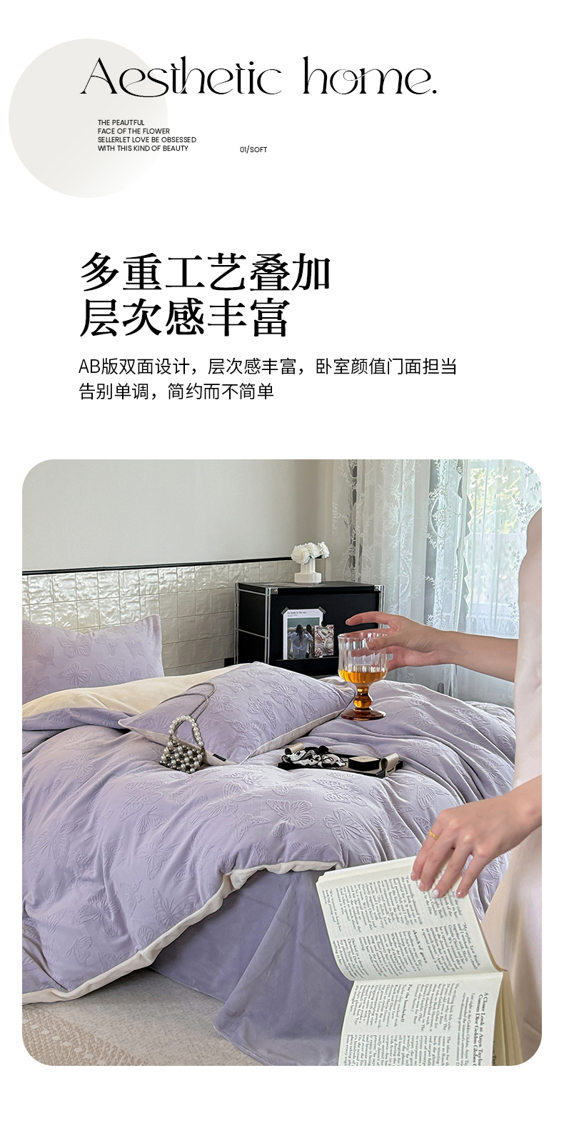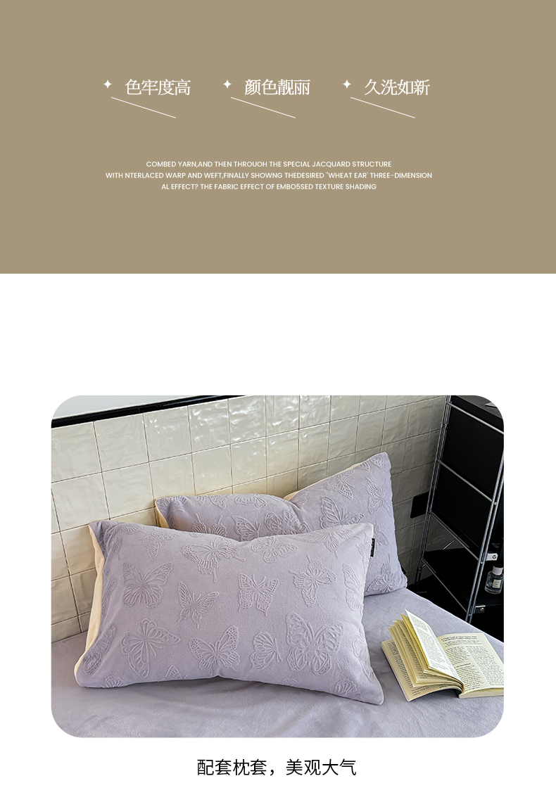 商品名称:若未家居 LOVEWE HOUSE 2025新款AB版250克全消光立体雕花烂花牛奶绒四件套-蝶舞 蝶舞-紫拼米