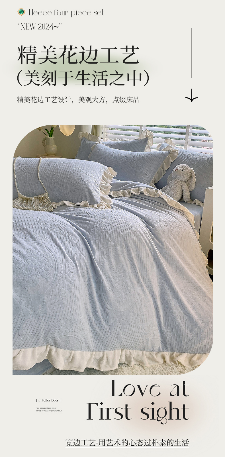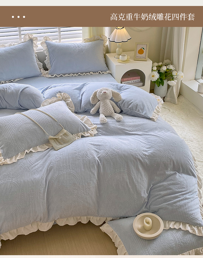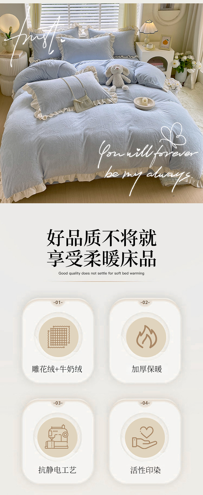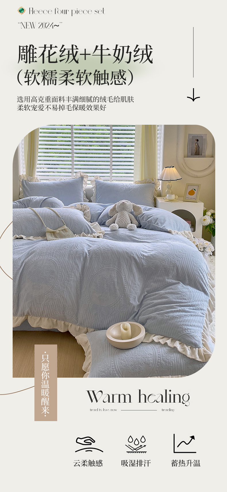 佰亿莱 2024新款韩版雕花绒四件套 洛丽塔-蓝