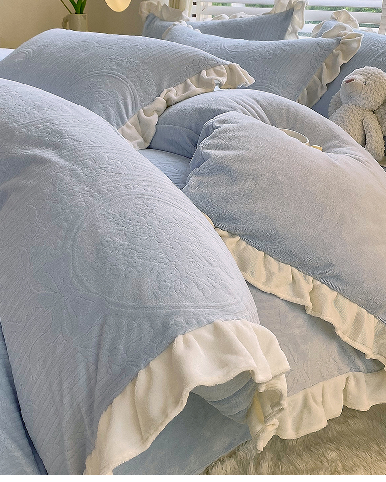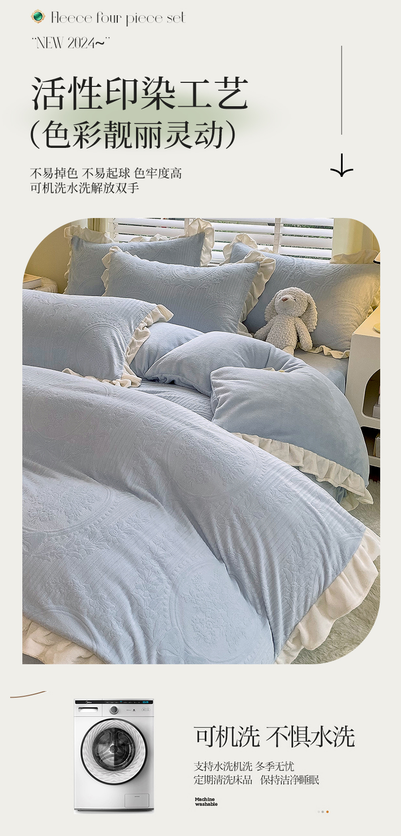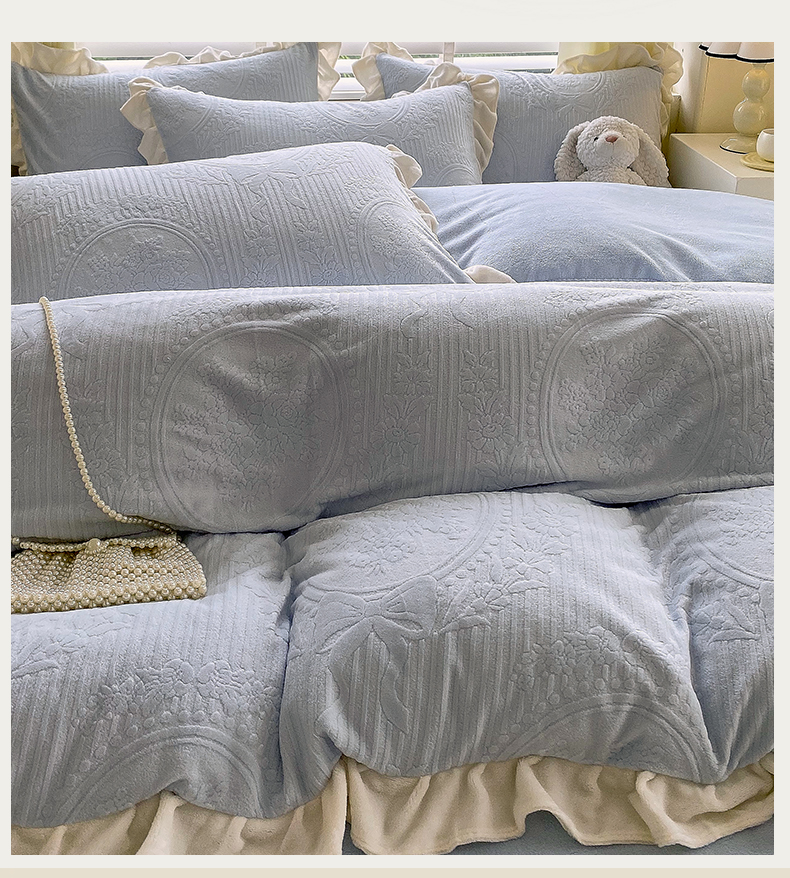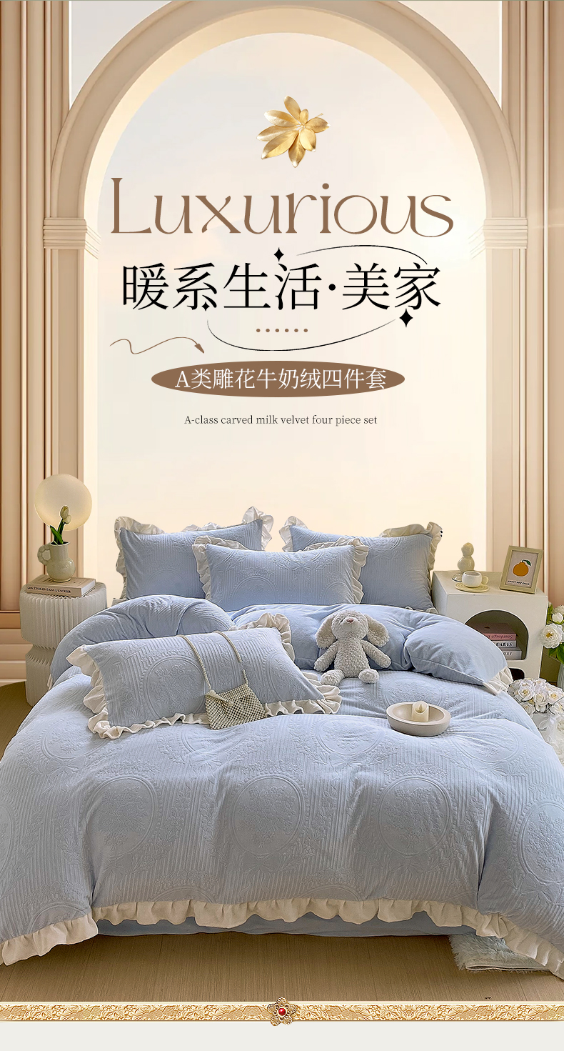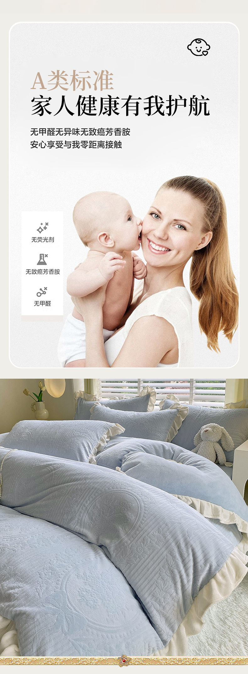 佰亿莱 2024新款韩版雕花绒四件套 洛丽塔-蓝