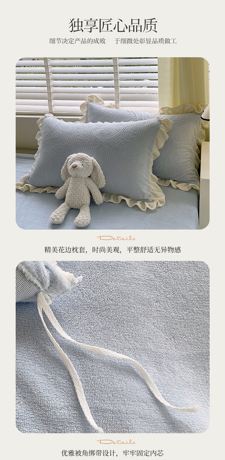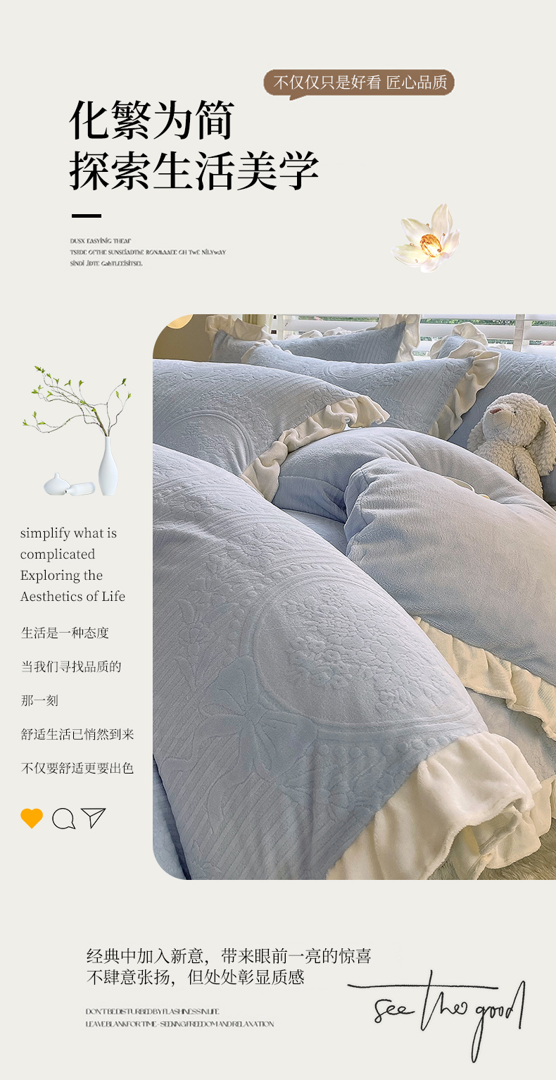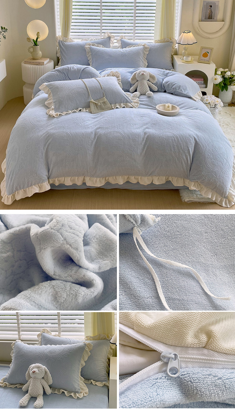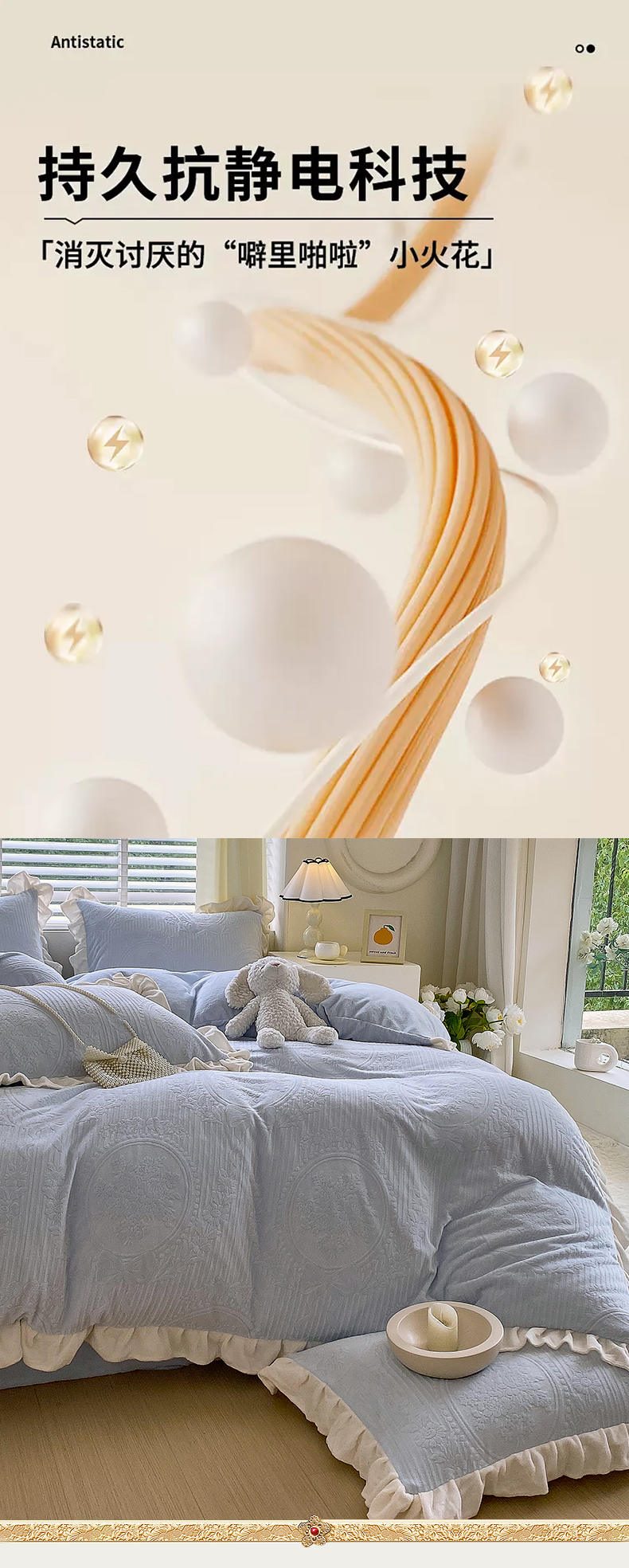 佰亿莱 2024新款韩版雕花绒四件套 洛丽塔-蓝