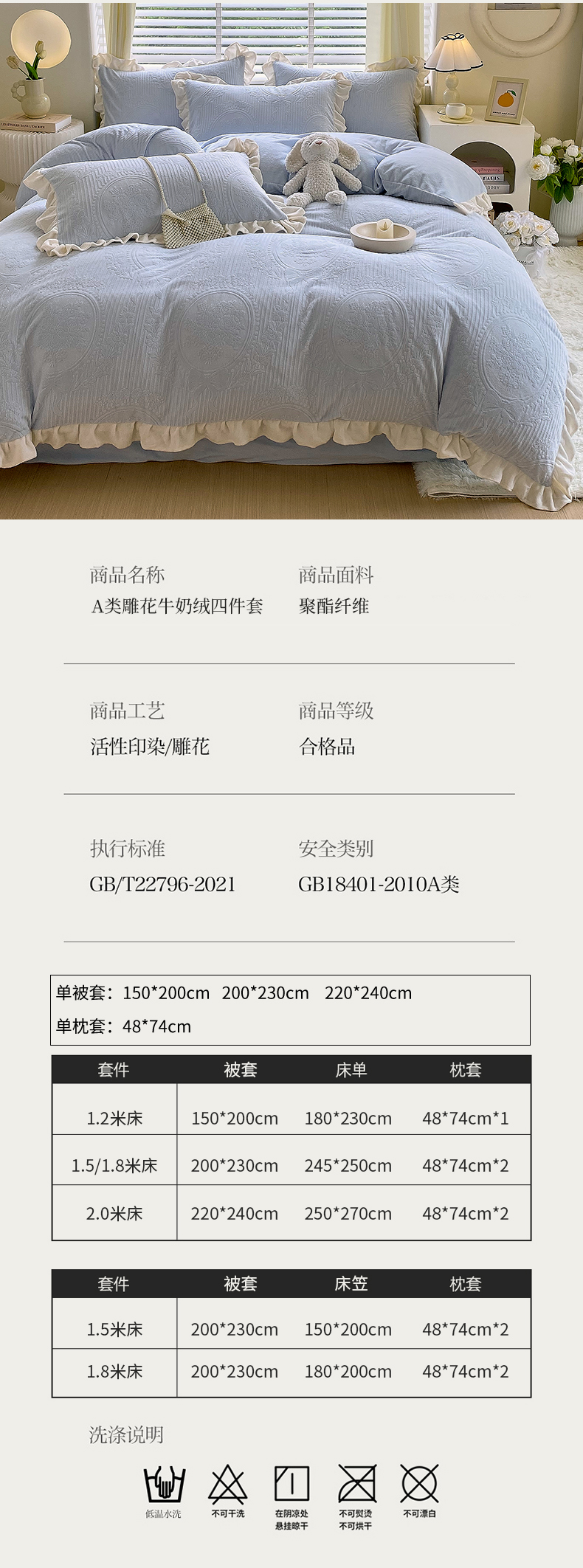 商品名称:佰亿莱 2024新款韩版雕花绒四件套 洛丽塔-蓝