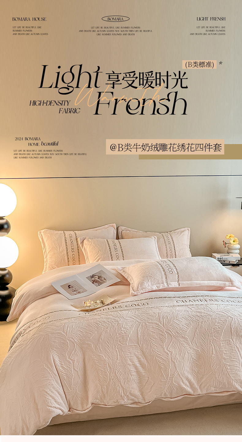 商品名称:(总)DC 2025新款B类牛奶绒雕花绣花四件套-朱丽叶